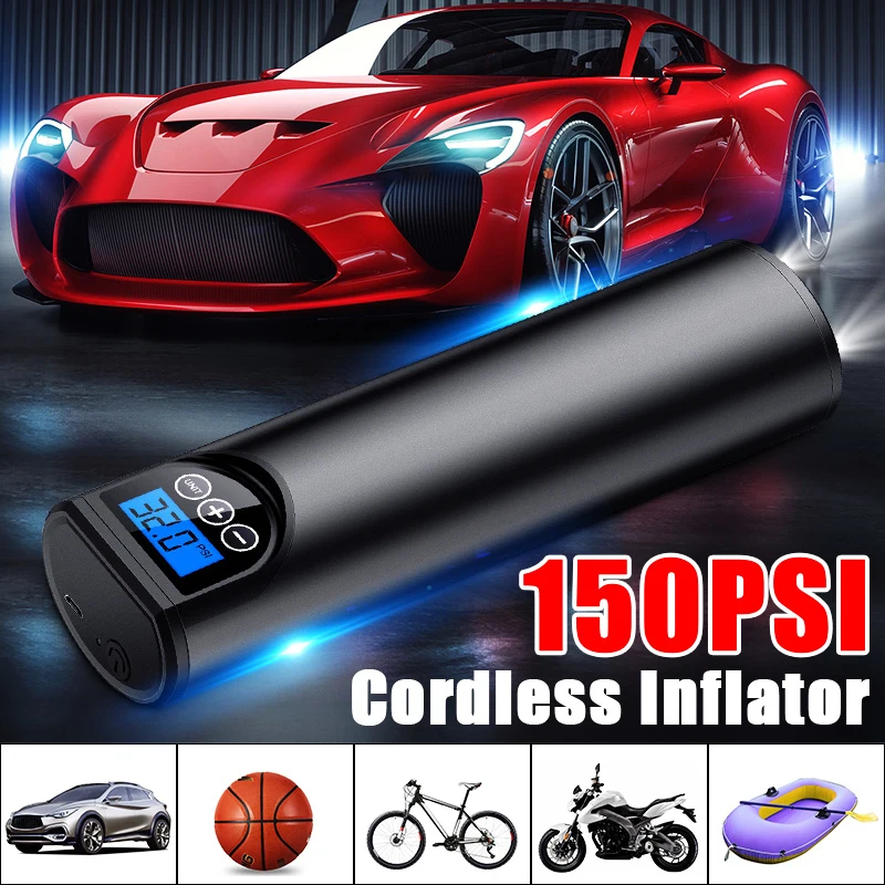 Воздушный компрессор, воздушный насос с давлением в шинах, ЖК-дисплей, 12 В, 150psi, беспроводной портативный насос для автомобиля, велосипеда