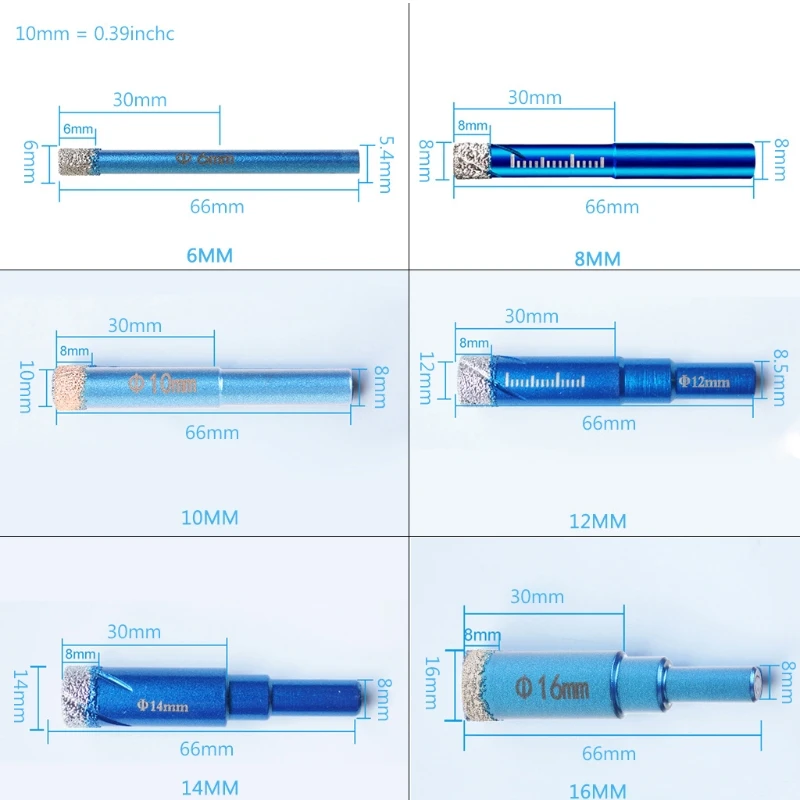 Сверло с алмазным покрытием, прочное сверло для сухого сверления стекла, мрамора, гранита, кварца, фарфора, керамики, 6, 8, 10, 12, 14, 16 мм