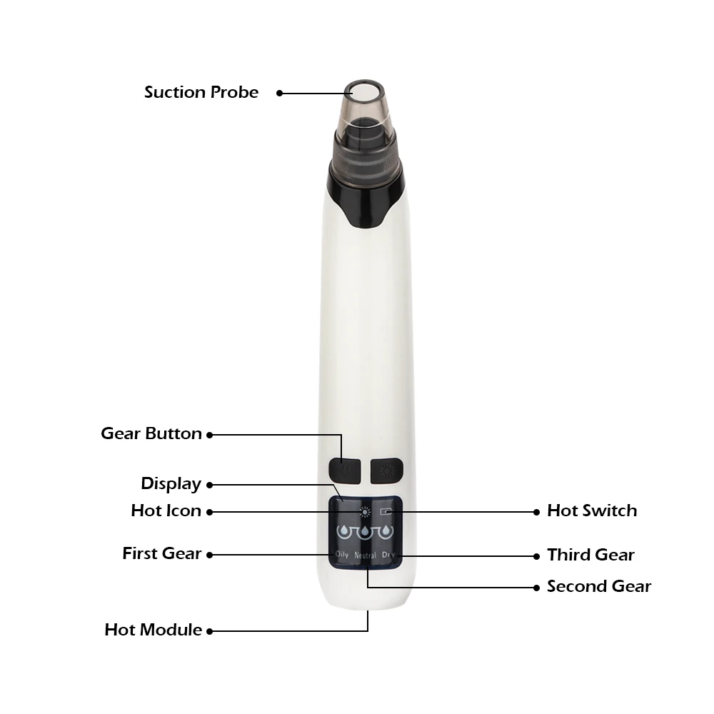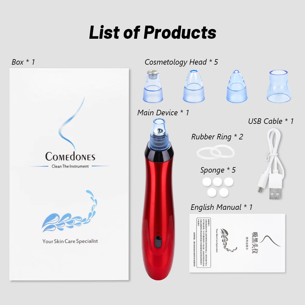 Посылка: 1 шт. Основное устройство, 5 шт. голова для косметолога, 5 шт. губка, 2 шт. резиновое кольцо, 1 шт. usb-кабель, 1 шт. руководство пользователя на английском языке