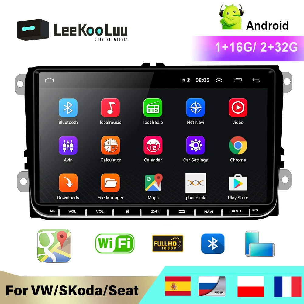 Автомагнитола LeeKooLuu, мультимедийная стерео-система на Android, с 9 "GPS, для VWVolkswagenGolfPoloJettaPassatSkodaOctavia, типоразмер 2DIN