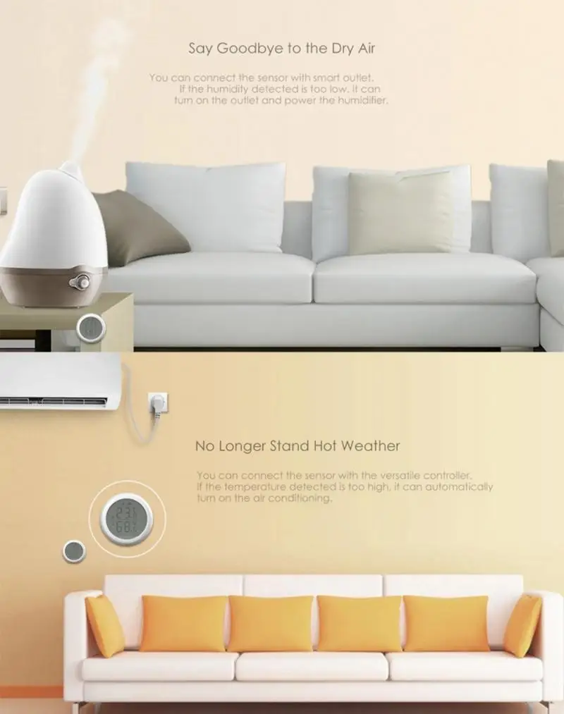 Воспринимаемая температура и влажность окружающей среды в помещении, динамический дисплей Icd в реальном времени, передает комфорт домашней среды, а также с шлюзом и облачной платформой, мобильное приложение для просмотра текущей и истории данных о температуре и влажности.