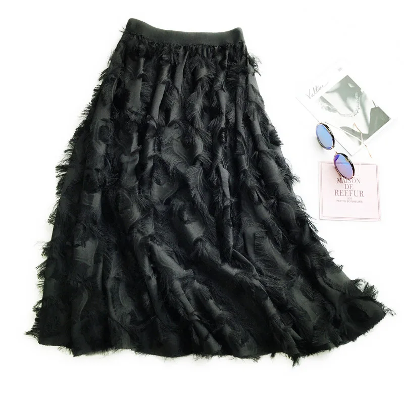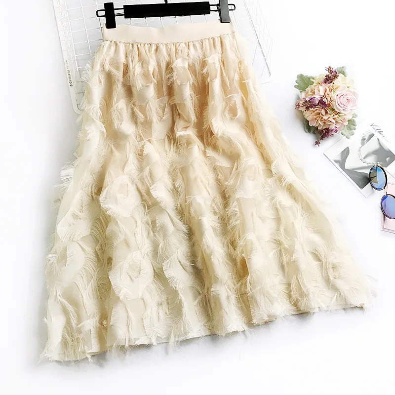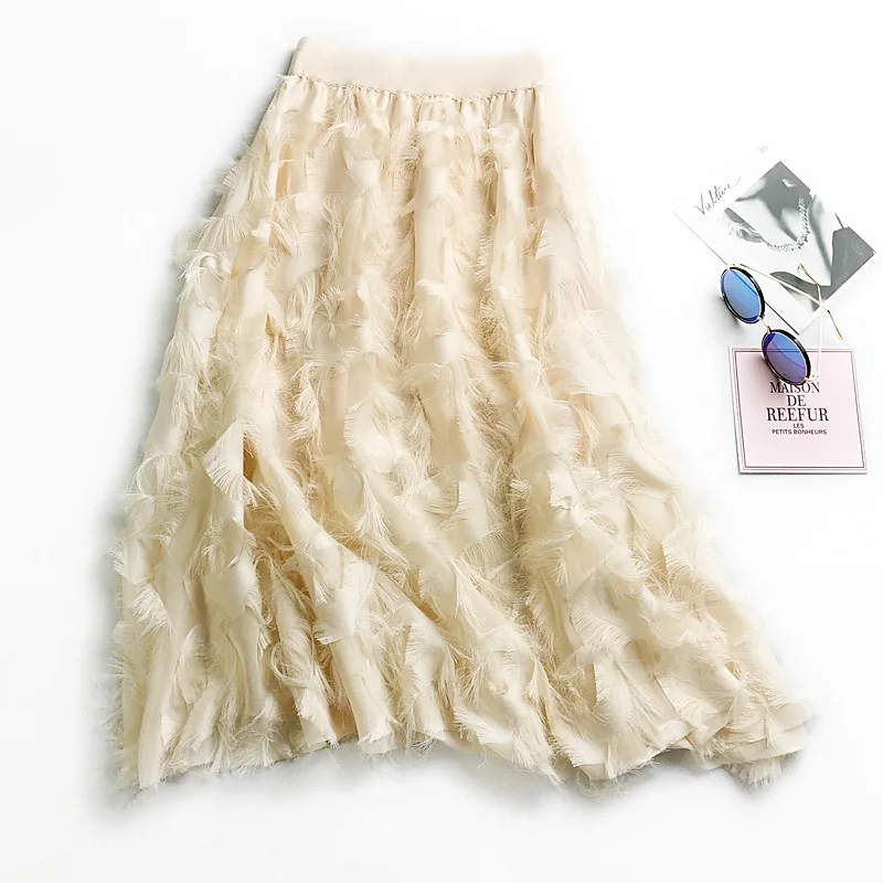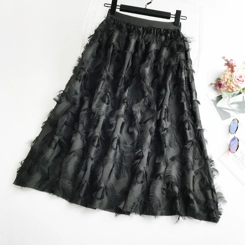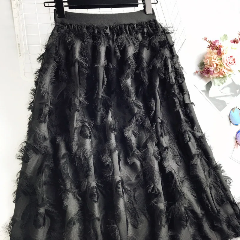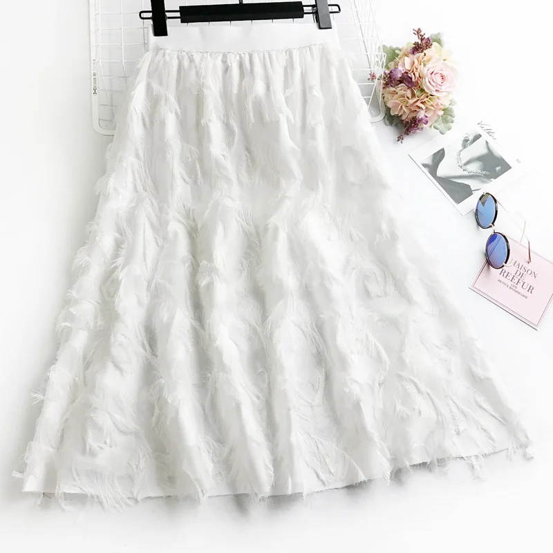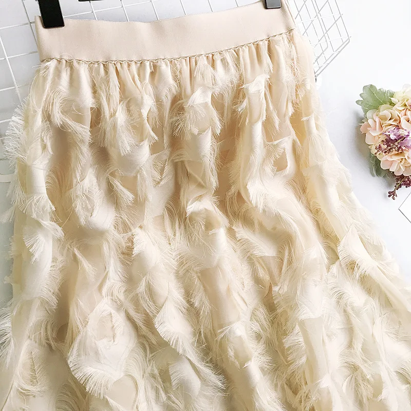 Женская юбка с высокой талией, юбка трапециевидной формы с перьями в Корейском стиле, 2022