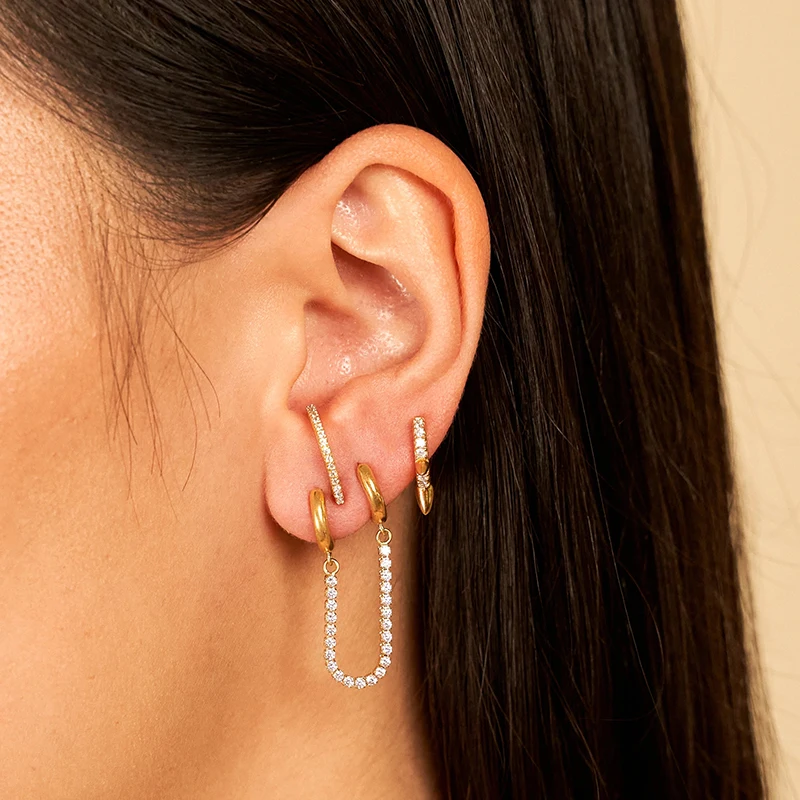 Автоклав 1 шт. двойные обручи серьги для женщин CZ стерлингового серебра 925 Циркон пирсинг серьга серьги уха пряжки ювелирные изделия: модные серьги в форме