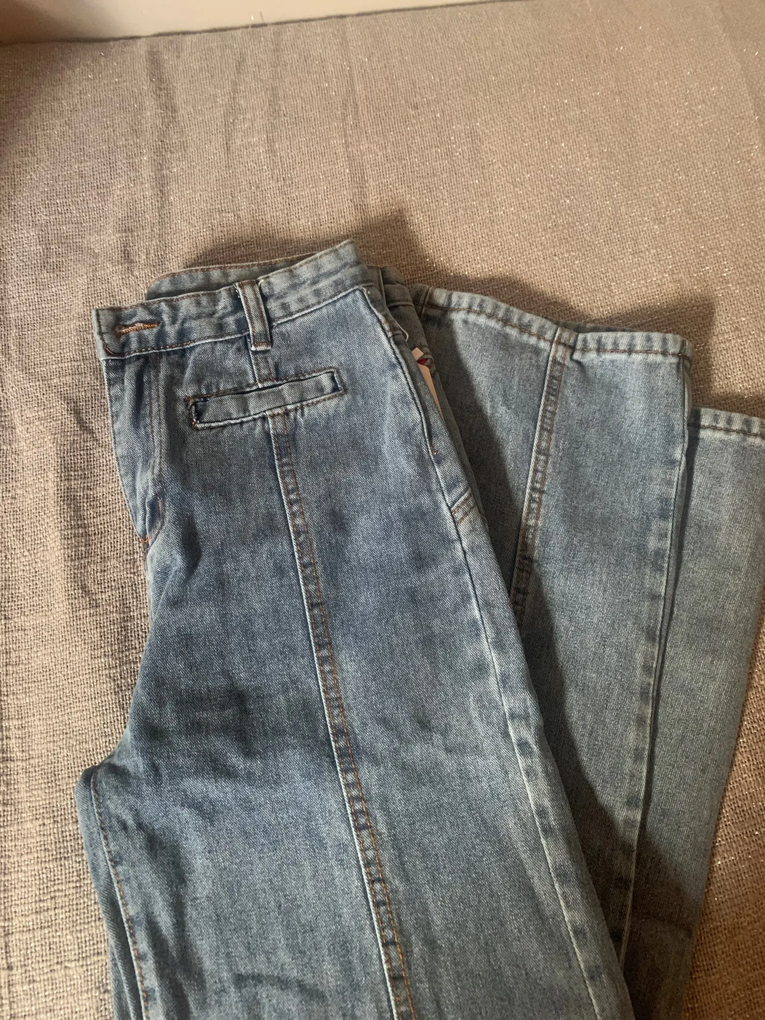 Я доволен этими джинсами. Внутри вы можете сказать, что они не самого высокого качества, но это, кажется, не является проблемой при ношении. Обратите внимание, что карманы только для демонстрации. Подходит немного необычно, но ремень не может быть зафиксирован. Пришло быстро