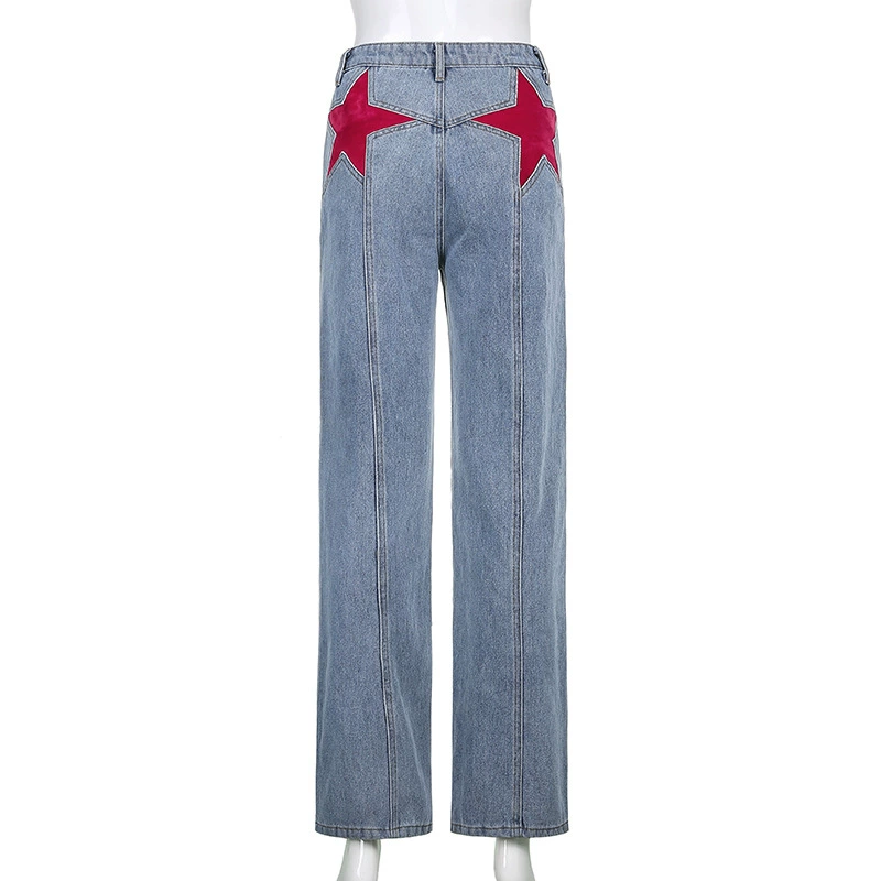 Джинсы женские, прямые, с высокой талией, со звездами, в стиле Харадзюку, в стиле 90-х