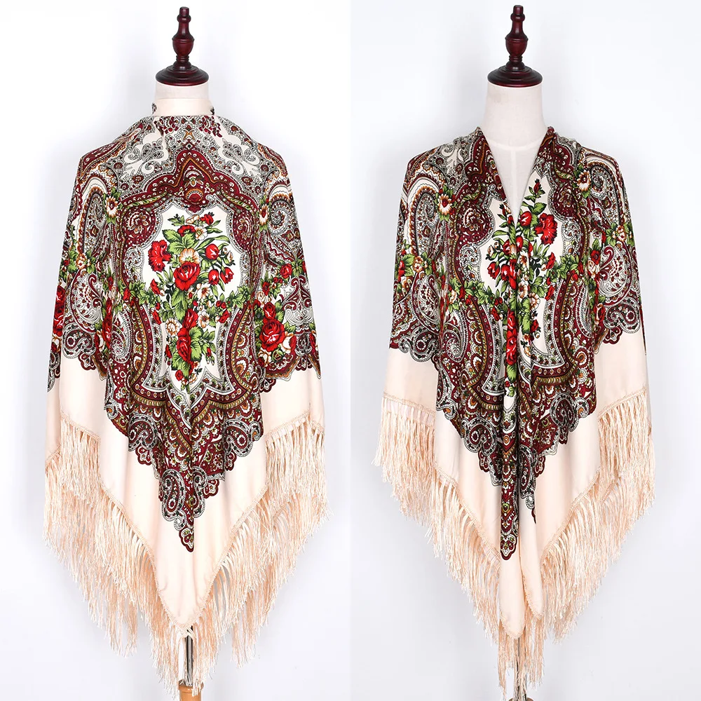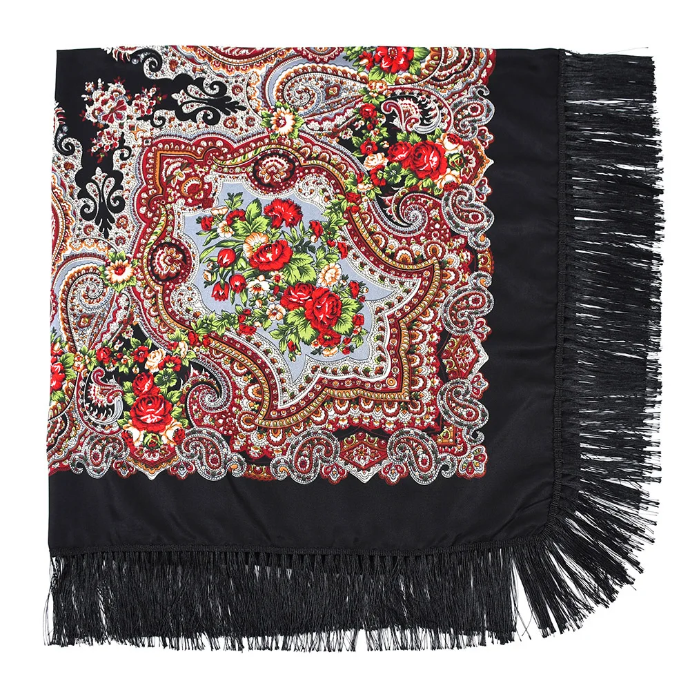 Большой квадратный шарф 160 см, русский Национальный женский акриловый Ретро шарф с цветочным принтом, зимние шарфы, женские шарфы с бахромой, бандана