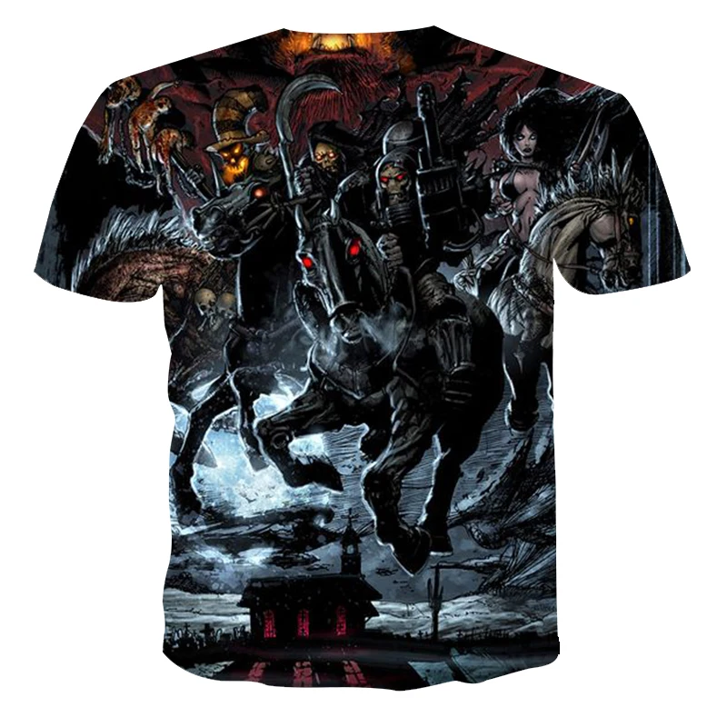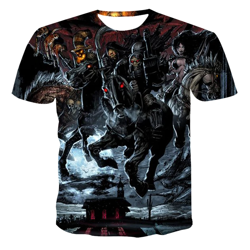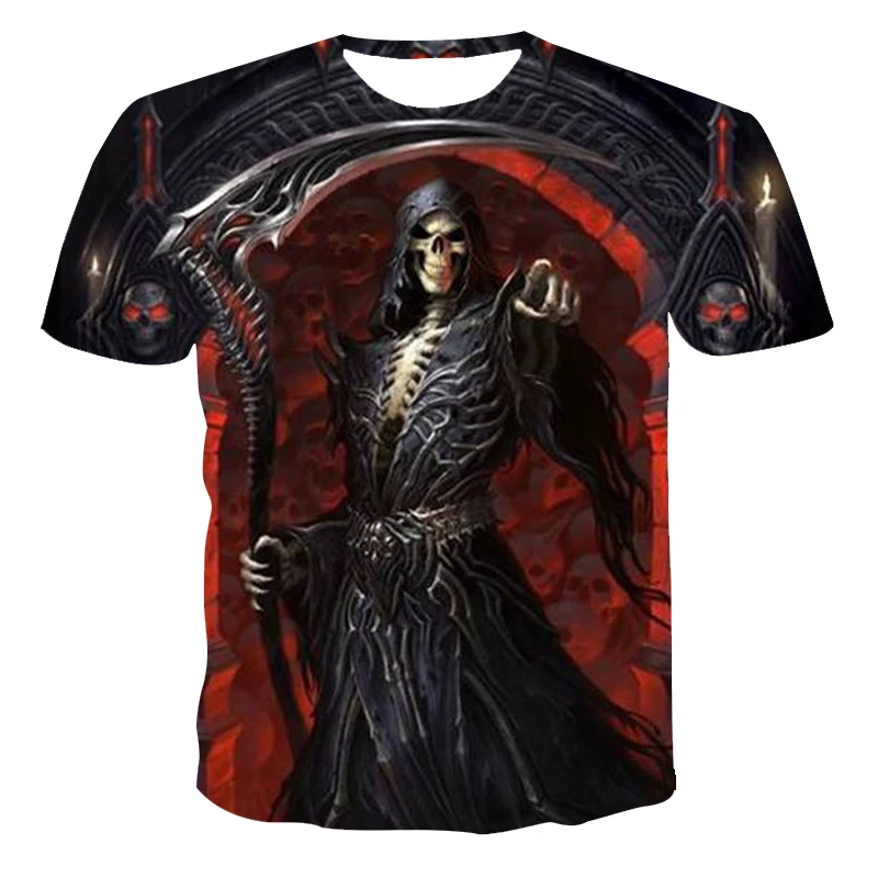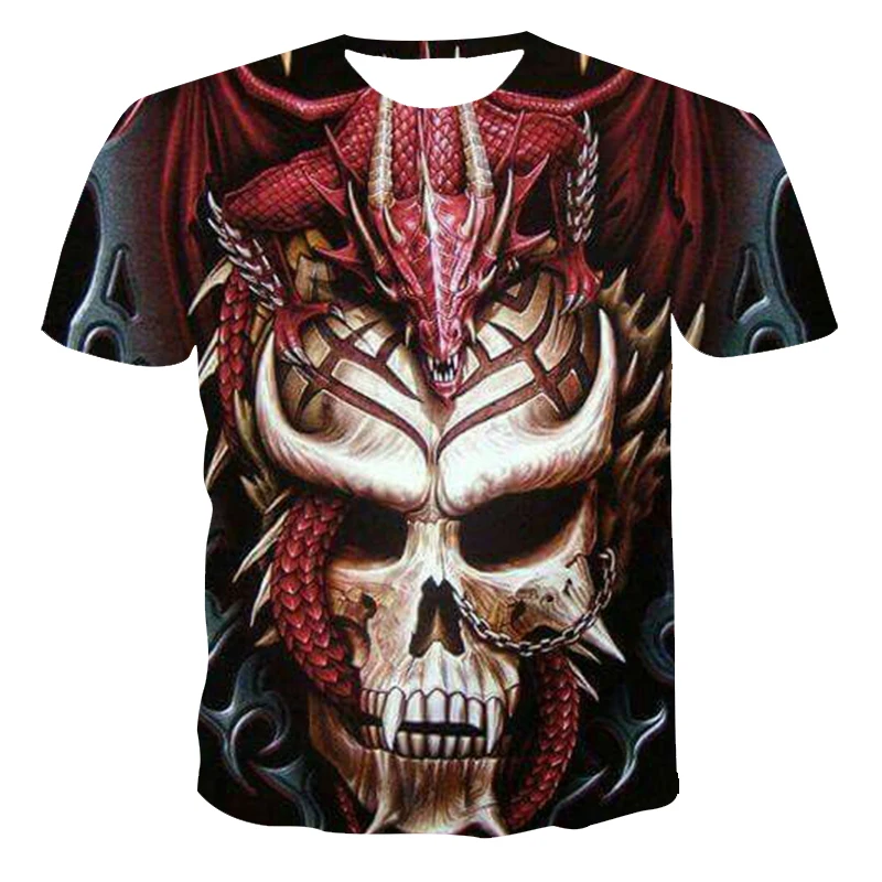 2021 последное мужское летний отдых 3D Печать Череп ужас уличный стиль, футболка с короткими рукавами и 130-6xl