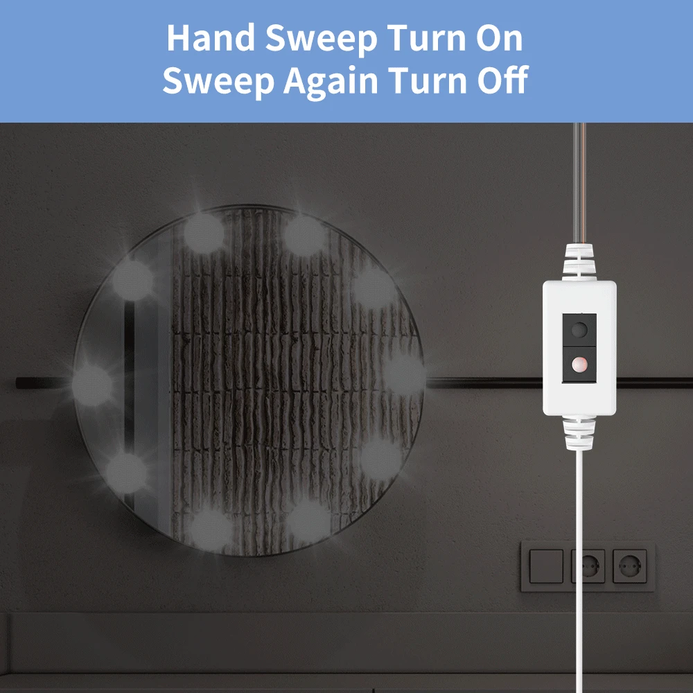 Светодиодная лампа для макияжа с датчиком движения рук, 2, 6, 10, 14 лампочек, USB, 12 В, регулируемая яркость, зеркальный светильник, голливудский светильник, светодиодная настенная лампа