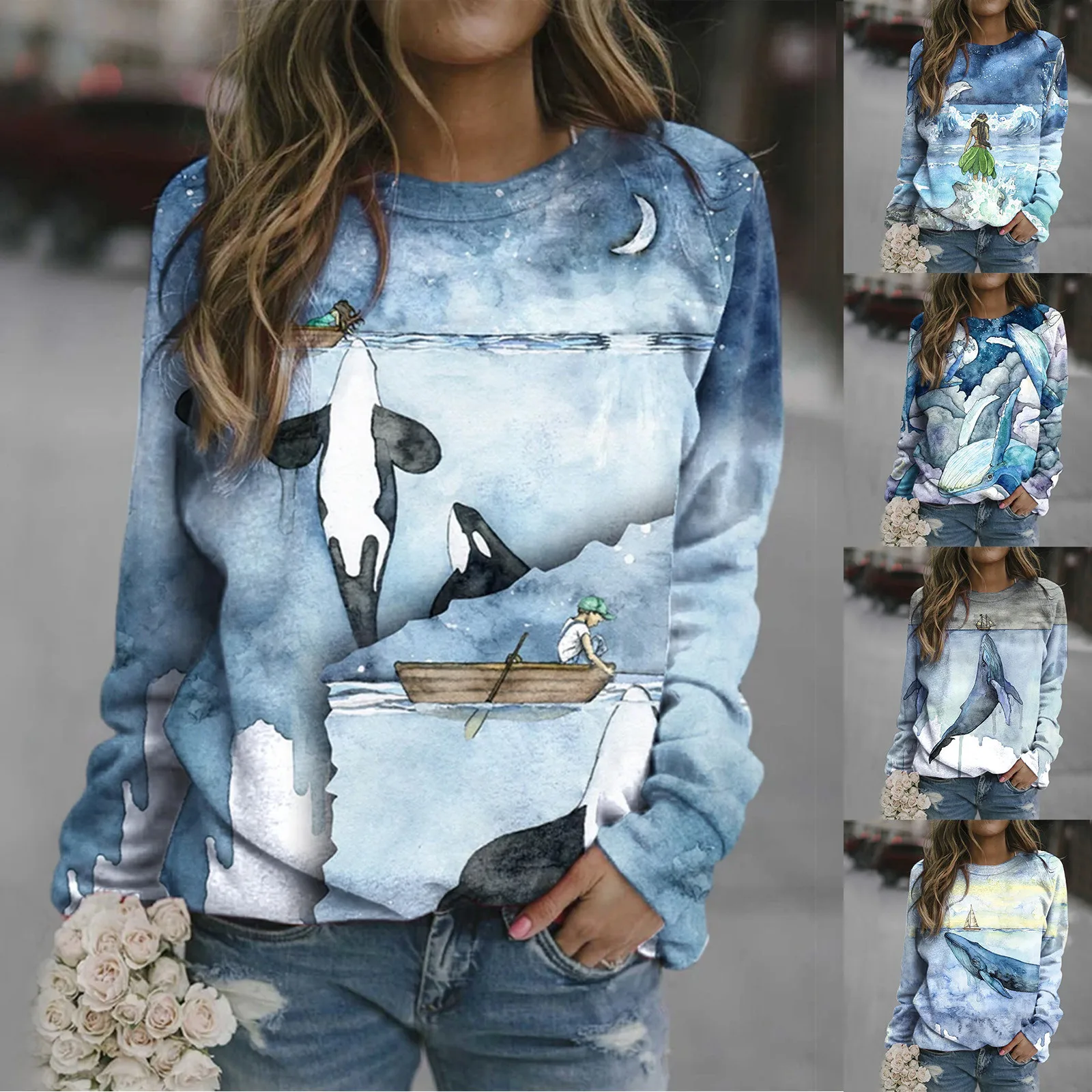 Забавные морские животные футболки с пейзажами harajuku с коротким футболка с длинным рукавом футболка женская одежда 2021 футболки для мальчиков