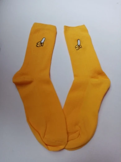 На одном носке банан сильно сдвинут в бок, но на ноге это почти незаметно
