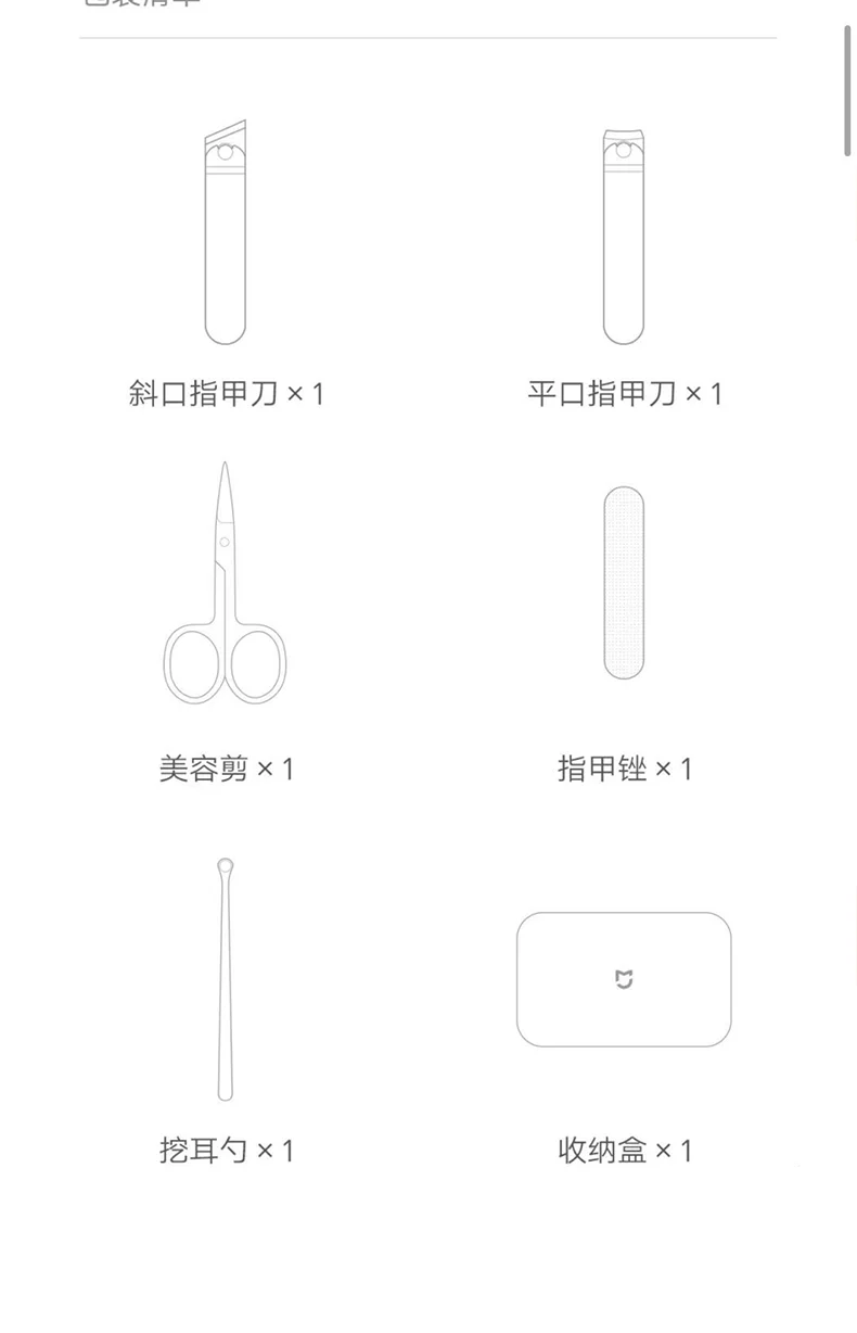 Посылка:1 * косые кусачки для ногтей1 * плоские кусачки для ногтей1 * ножницы для красоты1 * пилка для ногтей1 * наушник1 * коробка для хранения