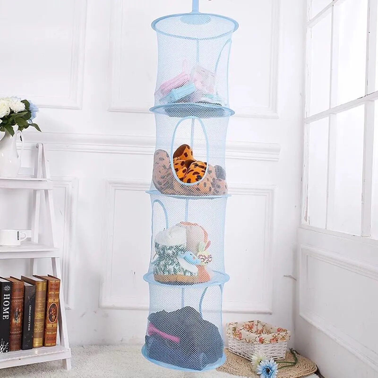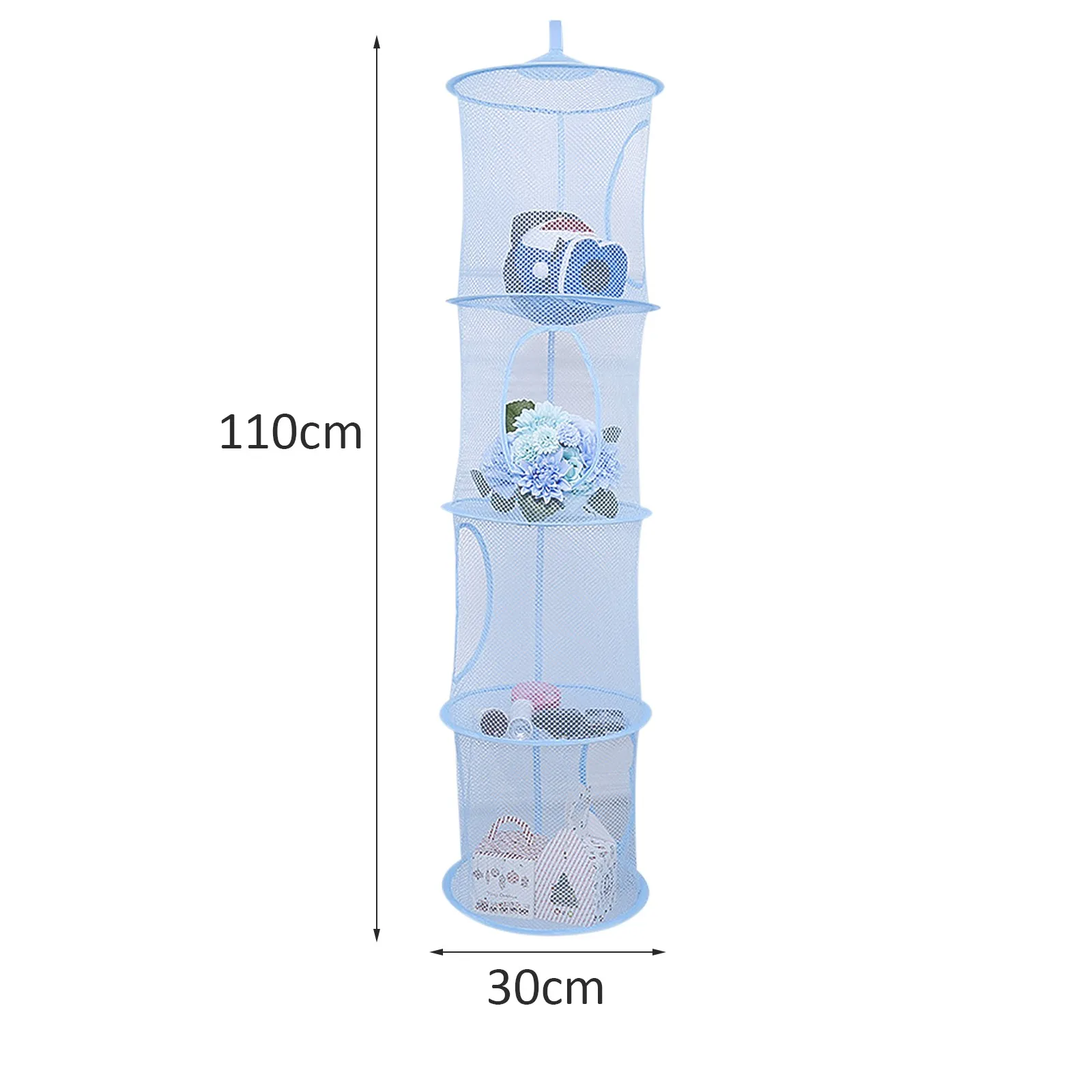 Синяя Складная подвесная корзина, дышащая корзина для хранения игрушек 4-сетчатая корзина