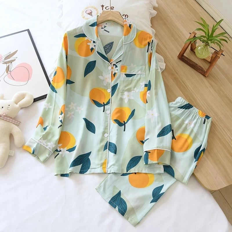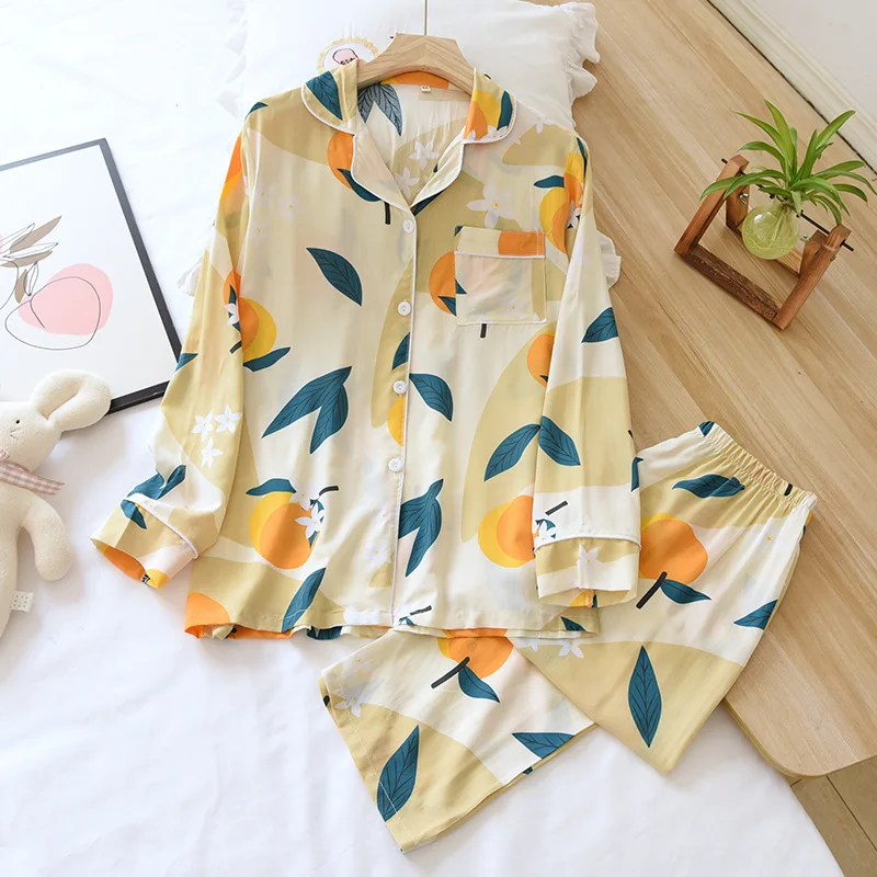 Весенняя вискозная пижама с длинным рукавом, одежда для сна с принт...