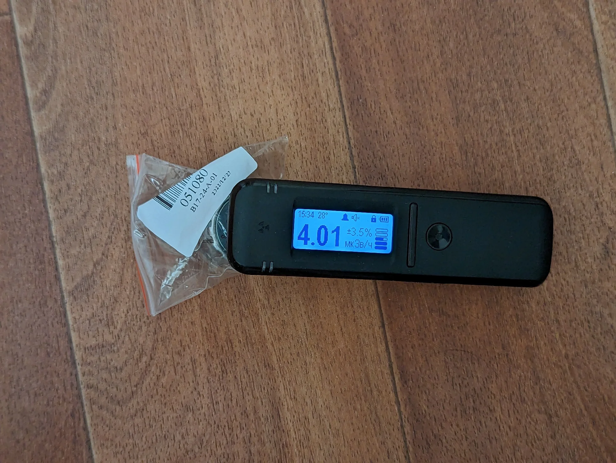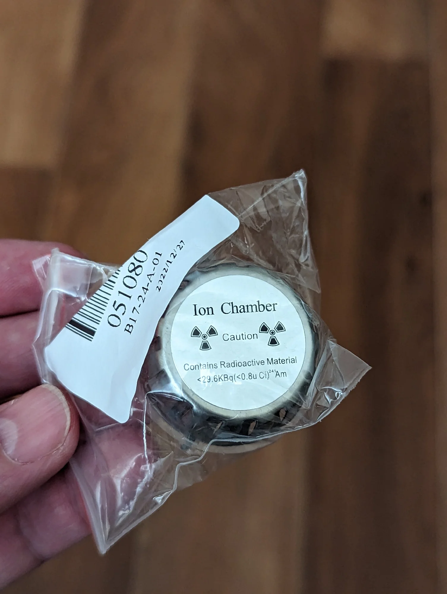 Соответствует описанию. Источник (без корпуса) достаточно злой - по гамме даёт в упор до 4-х микрозивертов в пике. Сколько светит по альфе неведомо, нечем мерить. Спектрометрия показала действительно Америций-241.