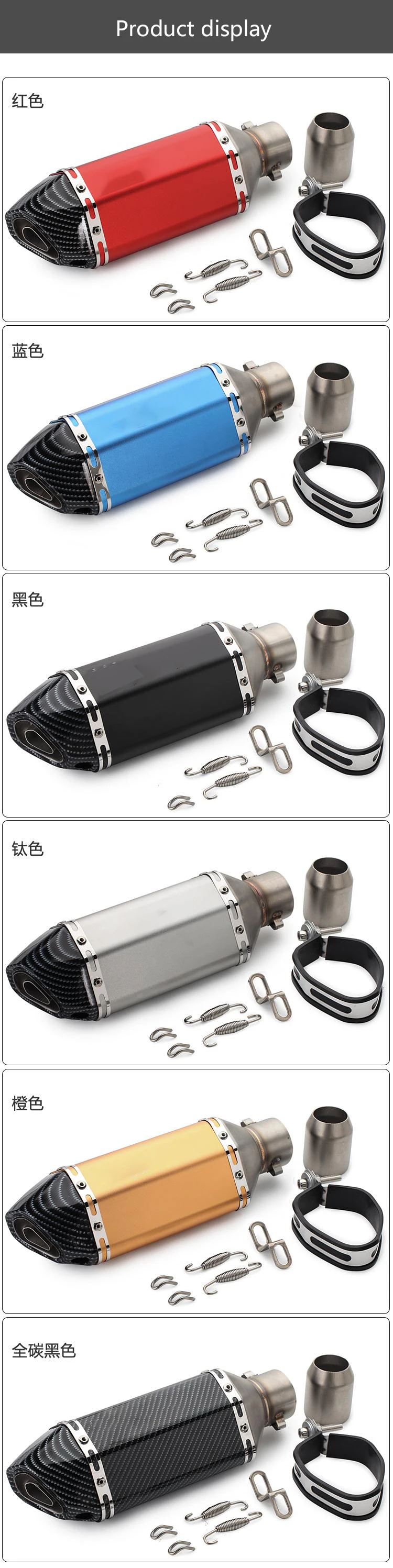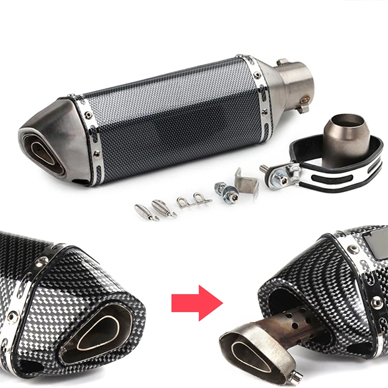 Это универсальная Модифицированная выхлопная труба мотоцикла, она подходит для моделей мотоциклов калибра 51 мм (с адаптером 36-51 мм). Этот продукт был изготовлен из высококачественной нержавеющей стали и Украшен узором из углеродного волокна. Отличное качество изготовления и хорошая текстура. Для очень немногих моделей установка может потребовать простой сварки и сборки.