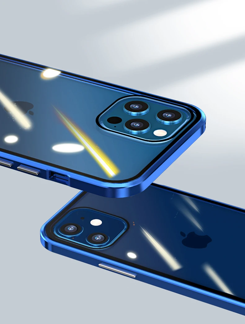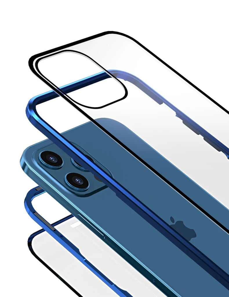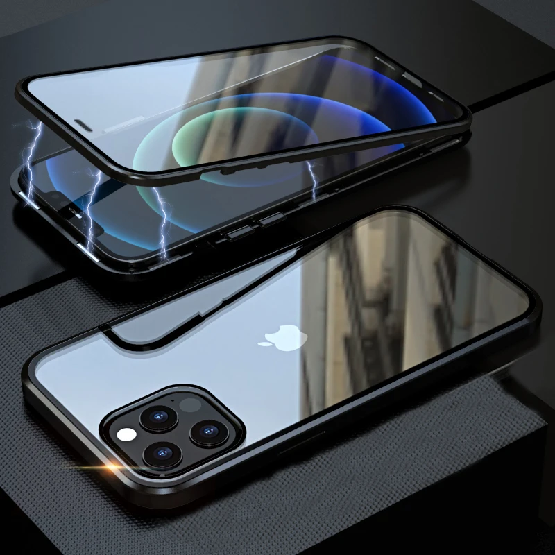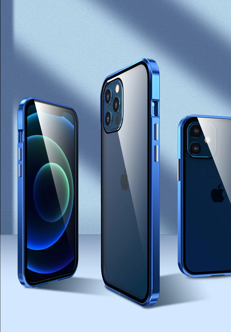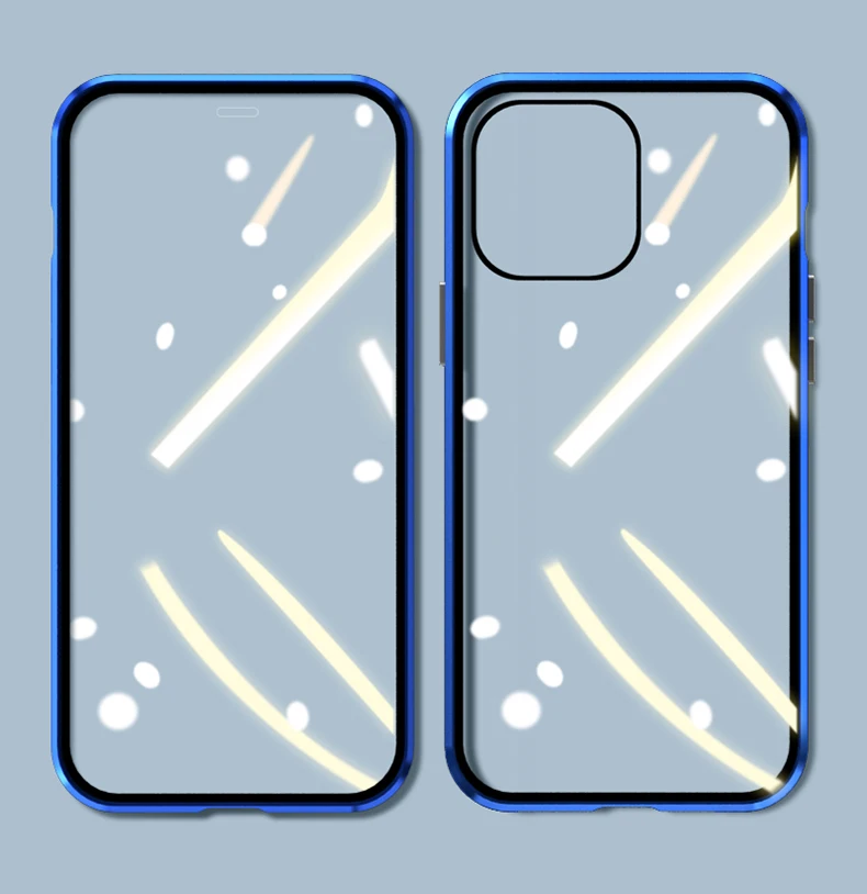 Магнитный металлический чехол для iPhone 12, 13 Pro Max, Mini, прозрачный двусторонний стеклянный бампер, чехол для телефона, роскошный carcasa, для мужчин и девочек