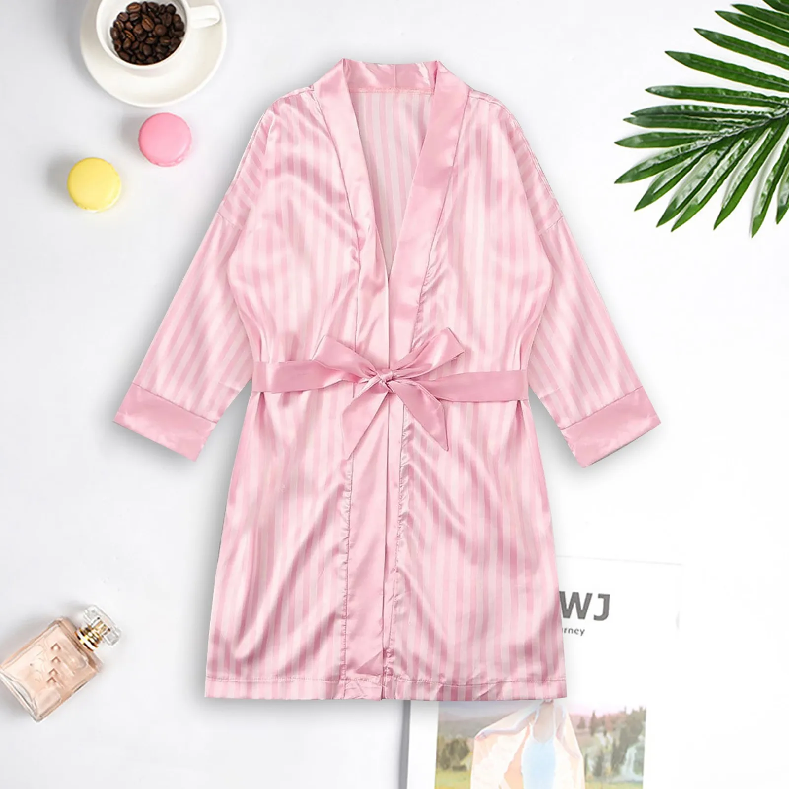 Атласные шелковые пижамы в полоску: хб. женская ночная рубашка халат сексуальная ночная рубашка Пижама домашняя одежда ночное белье, пеньюар, топы, женская одежда