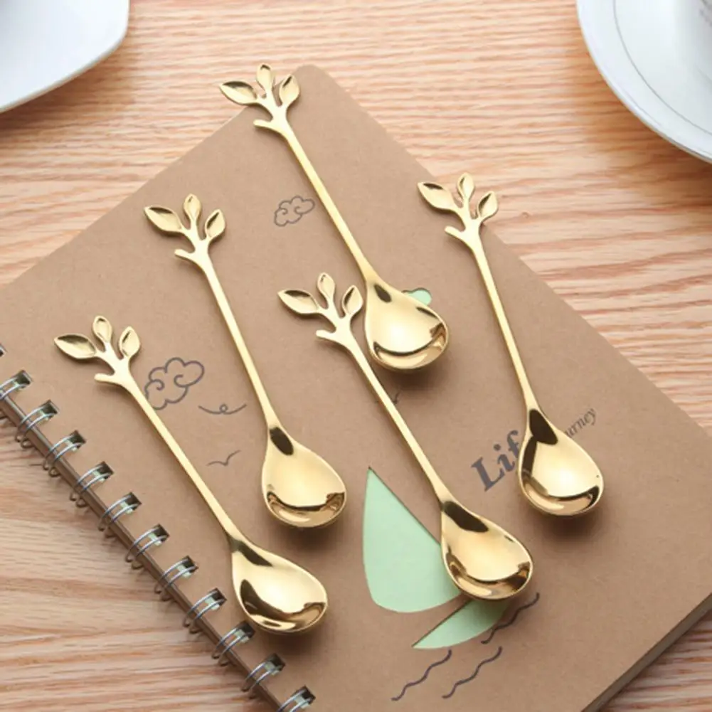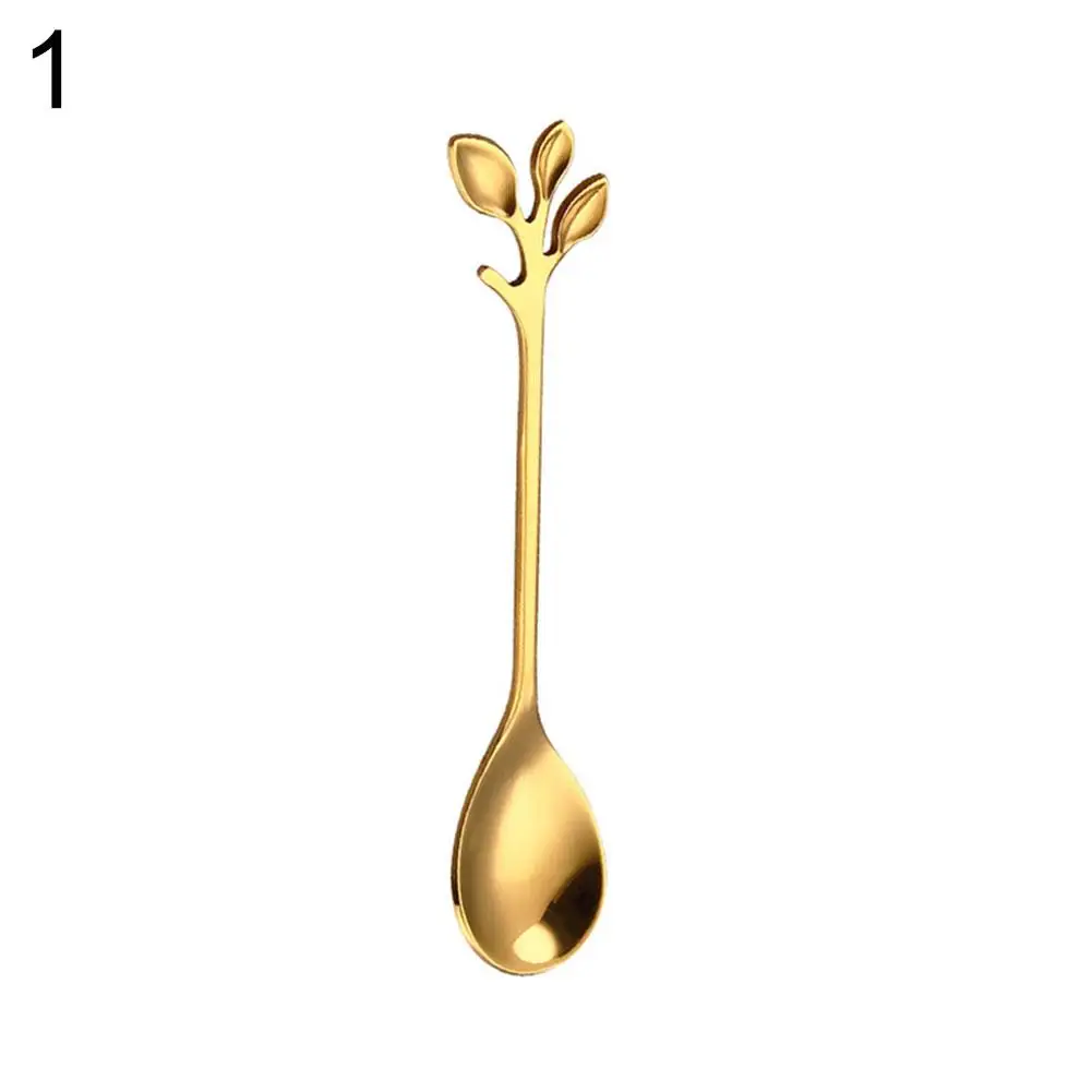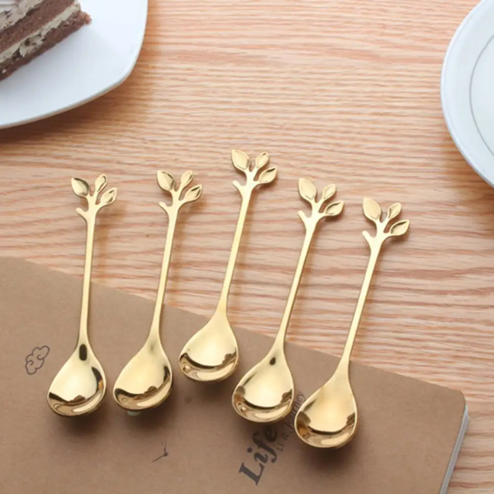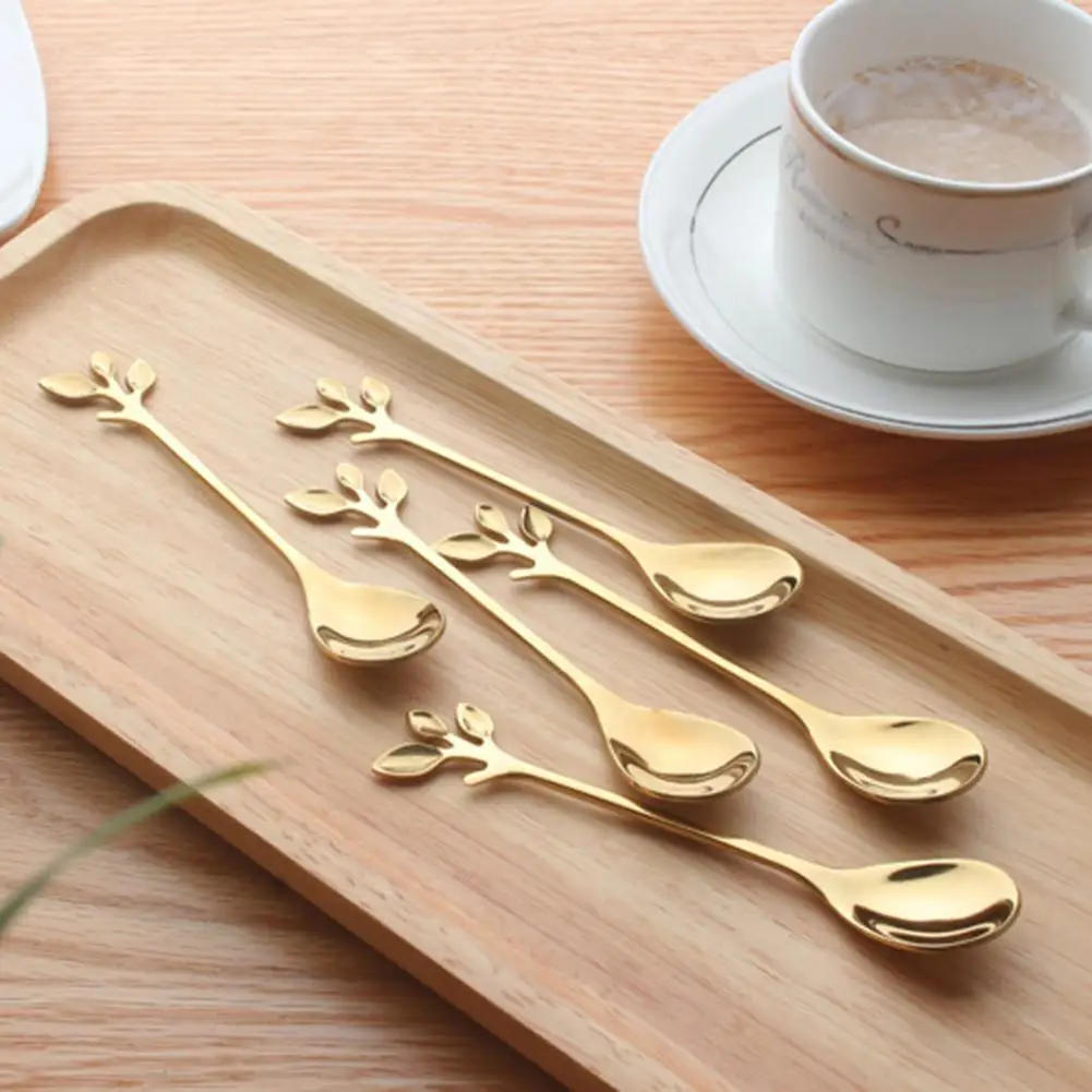 Вилка-совок, винтажная прочная ложка для кофе с золотыми листьями, креативная столовая посуда для кухни, принадлежности для ресторанов