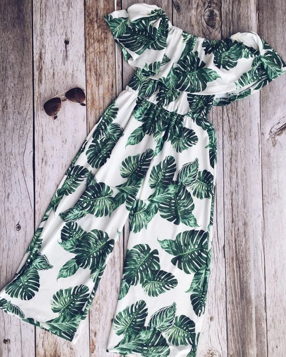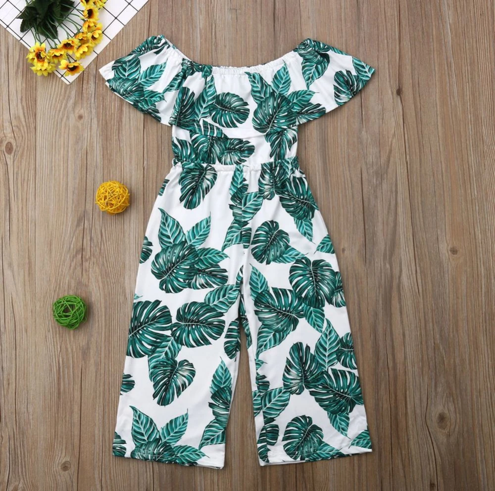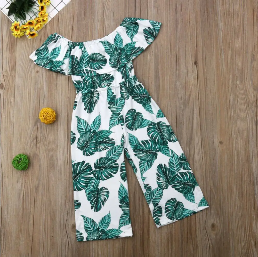 Комбинезон для девочек, летний, с принтом в виде зеленых листьев