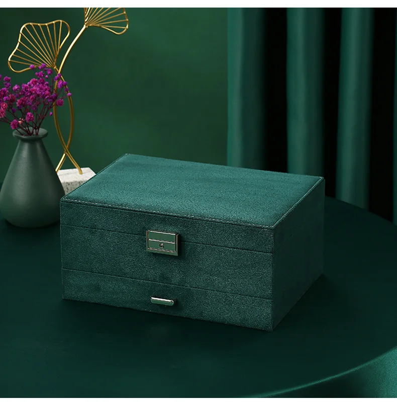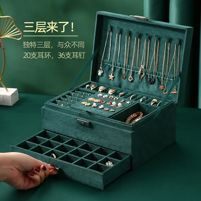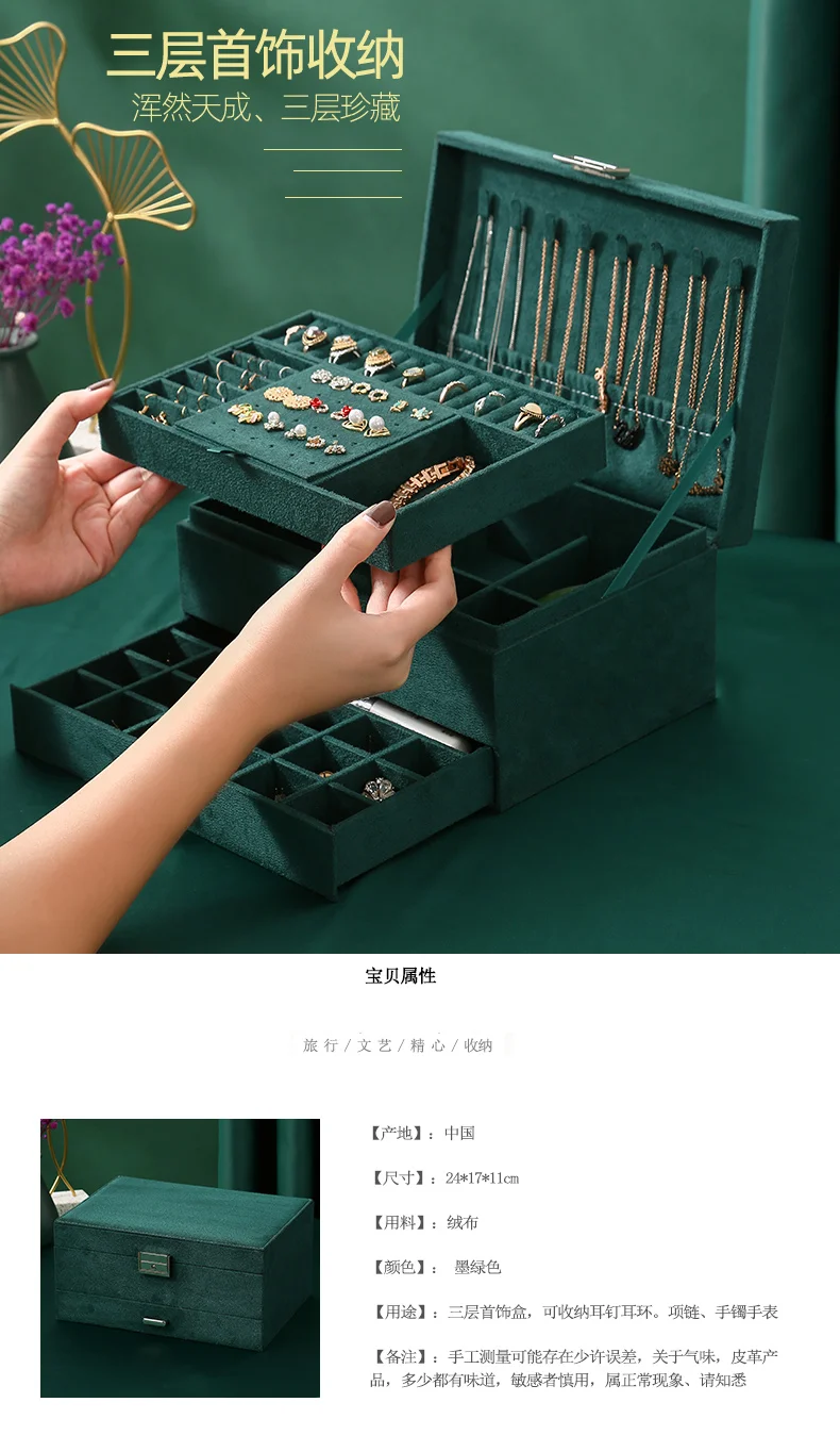 Зеленые гвоздики органайзер для ювелирных украшений WE, объемная бархатная шкатулка с замком для женщин, 3-слойный держатель для колец и ожерелий, для макияжа