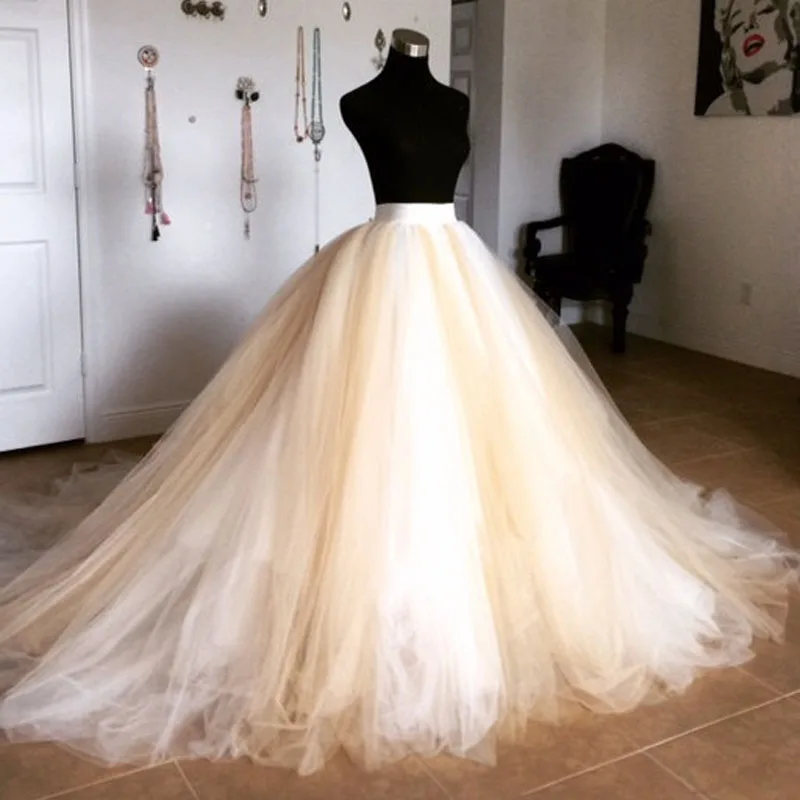 Пышные бальные платья из тюля для невесты, бежевая юбка-пачка до пола, изготовленная на заказ длинная Тюлевая юбка на молнии, Нижняя юбка на заказ