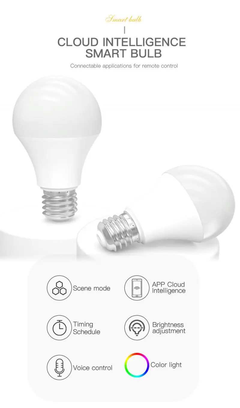 15 Вт 1000 лм умная лампа с цоколем E27/B22, эквивалентная 80 Вт традиционным лампам накаливания. Экономит до 80% энергии, дольше и экономит энергию.