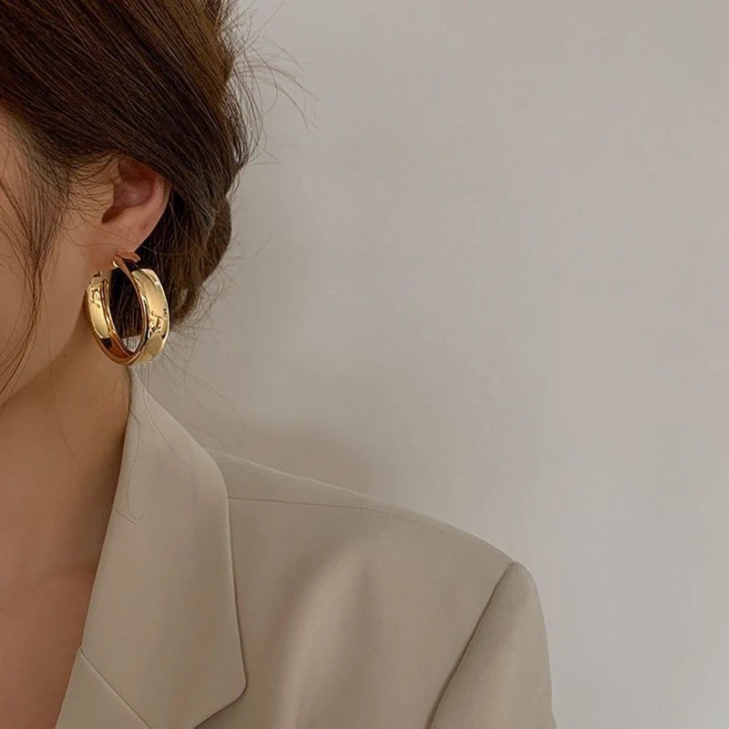 Круглые серьги BLIJERY для женщин, модные гладкие золотистыеСеребристые серьги круглой формы с толстым металлическим покрытием, геометрические украшения для вечеринок, Подарочная бижутерия