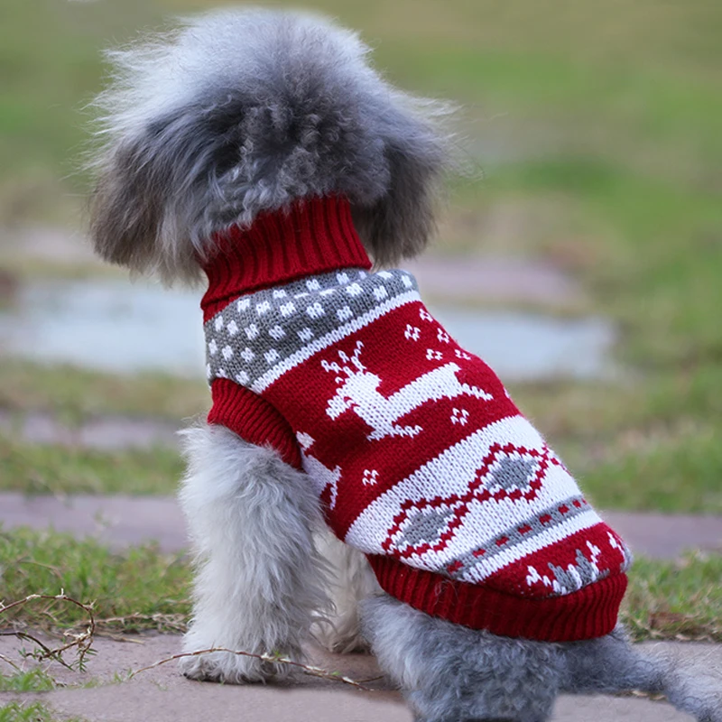 Зимняя одежда для собак Теплый Рождественский свитер с лосем для маленьких одежда для Йорка Чихуахуа верхняя одежда для питомца вязание крючком голая кошка одежда