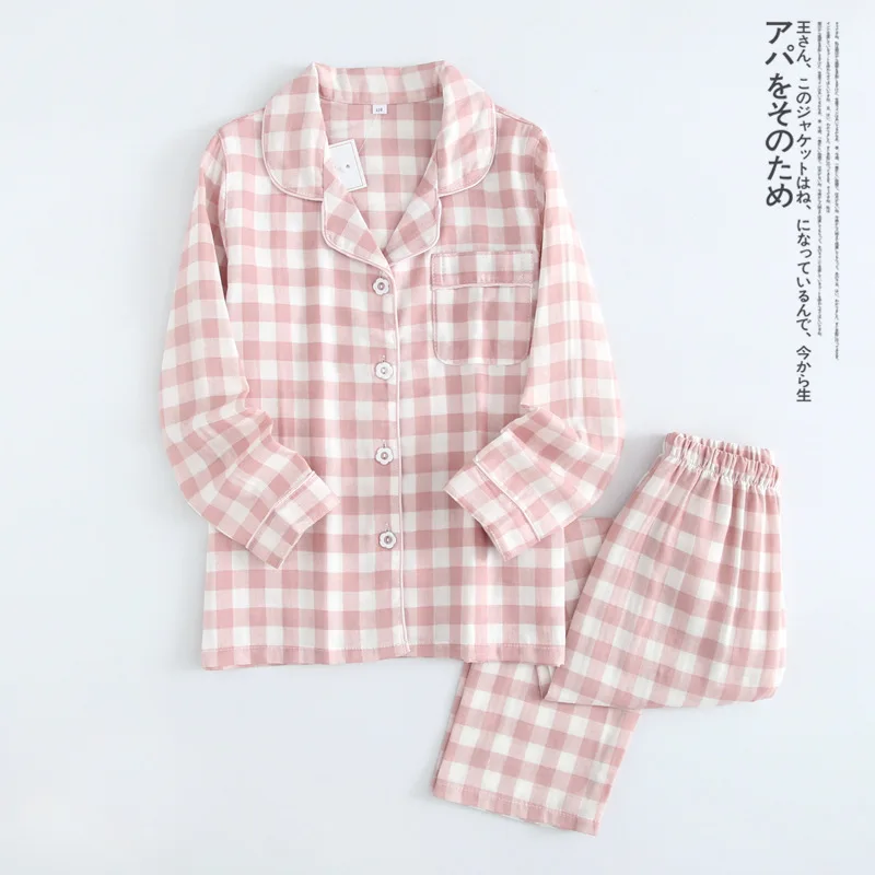 2 шт.компл. Весенняя Хлопковая женская пижама в розовую клетку, одежда для сна с длинным рукавом, домашняя одежда для женщин, свободная одежда для сна, домашний костюм