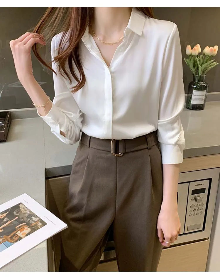 Рубашка Женская атласная с длинным рукавом, модная винтажная блузка...