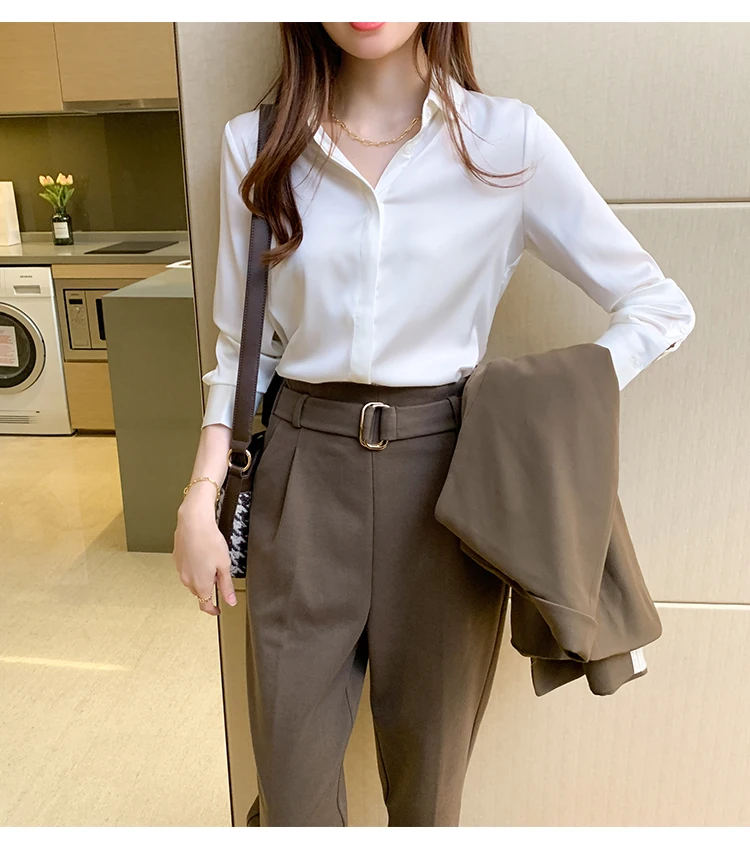 Шифоновые рубашки на пуговицах, женская блузка с длинным рукавом, модная одежда в Корейском стиле, шифоновые белые женские топы больших размеров, весна-осень, новинка
