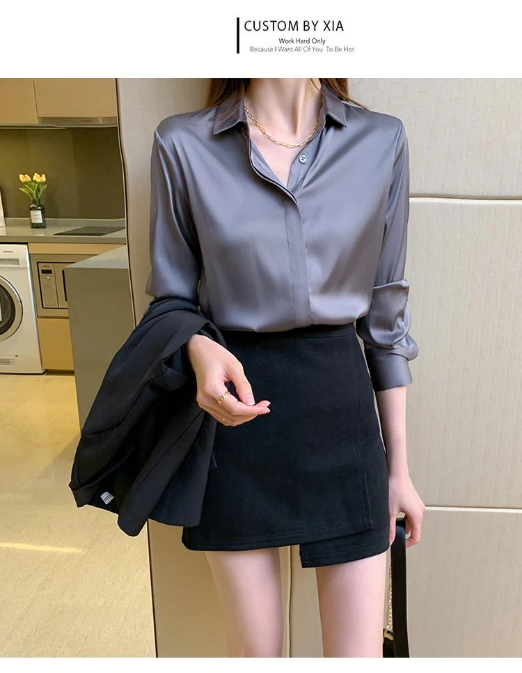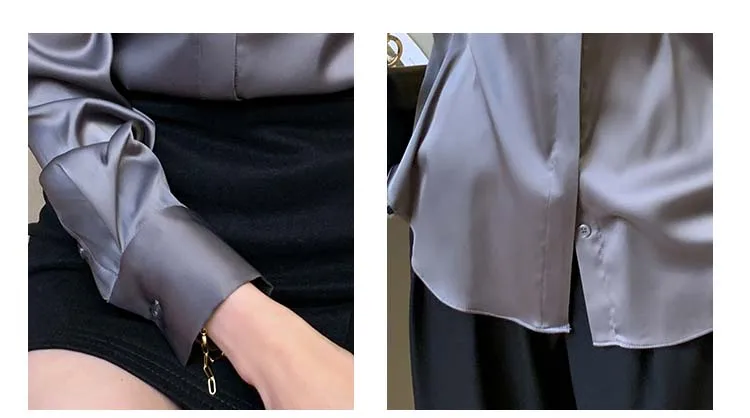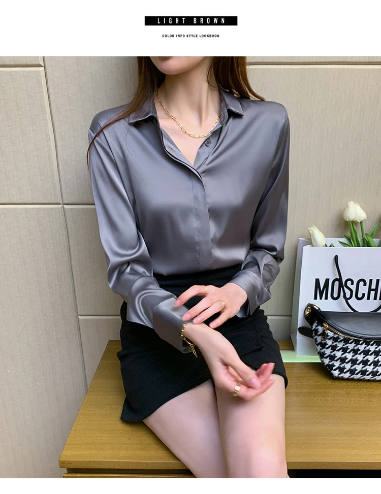 Осенняя модная атласная шелковая рубашка на пуговицах, винтажная бл...