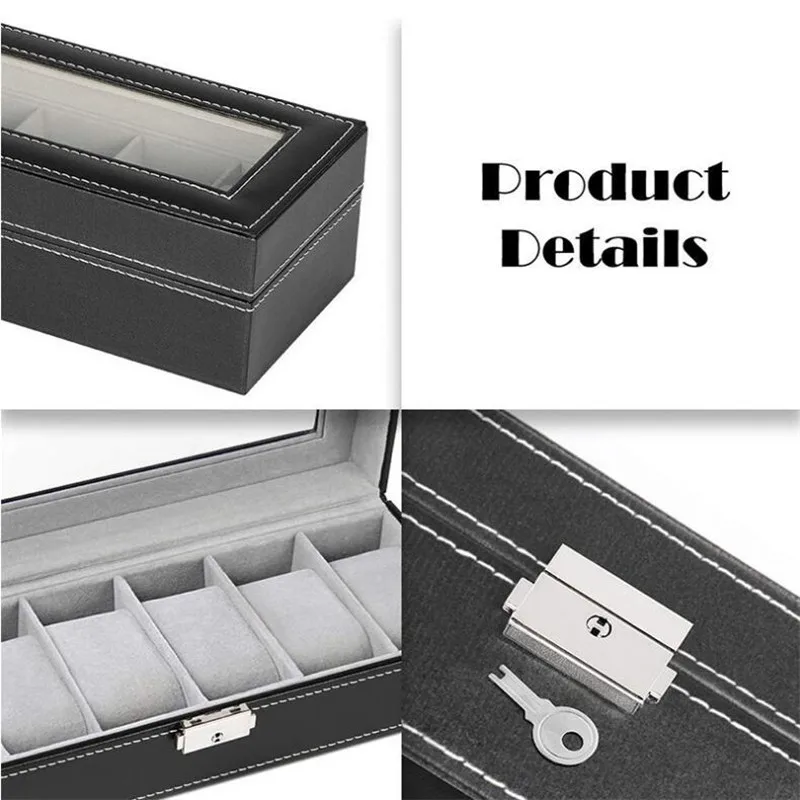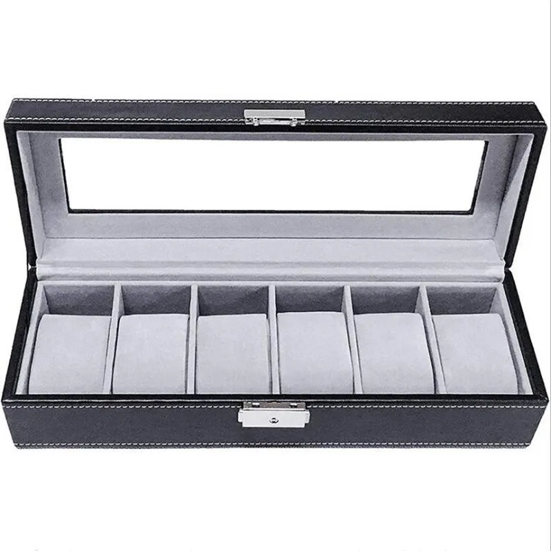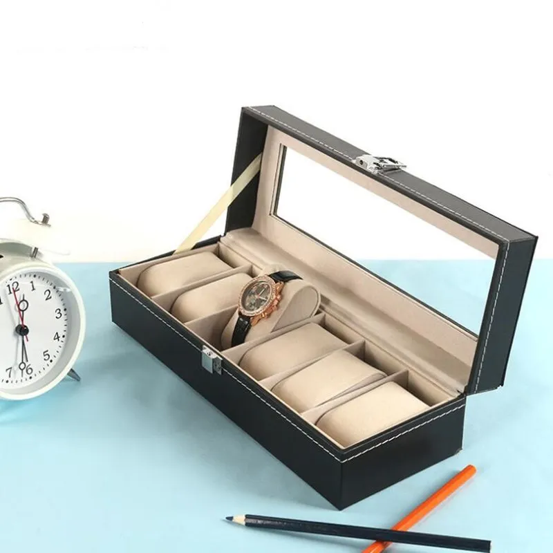 Бокс для часов с 6 ячейками, из искусственной кожи серый или бежевый чехол для хранения часов, органайзер для ювелирных изделий, лучший подарок
