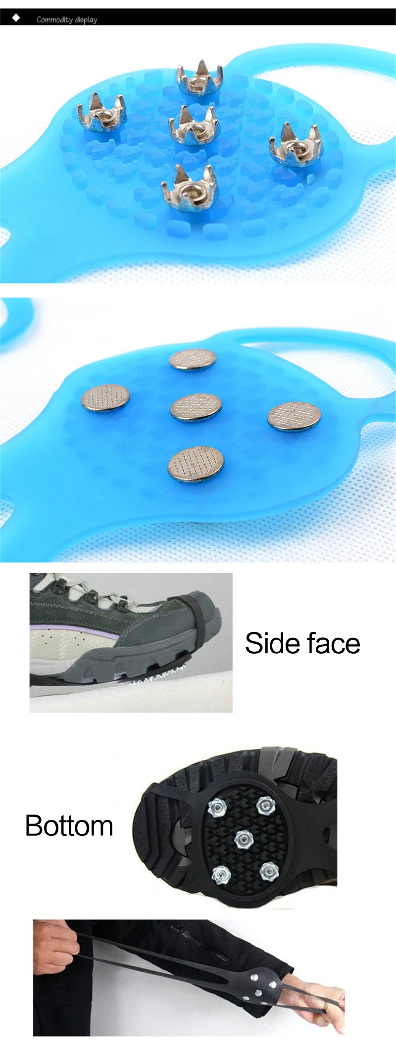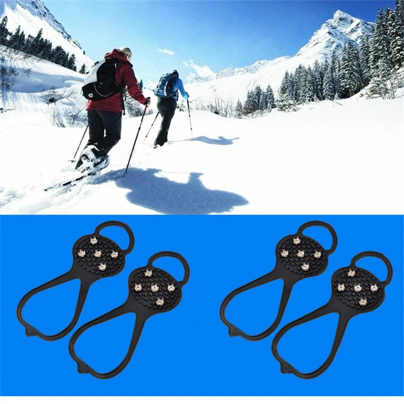 Зажимы для льда с 5 зубцами для мужчин и женщин, зимние шипы, Нескользящие, скользящие, для скалолазания, походов