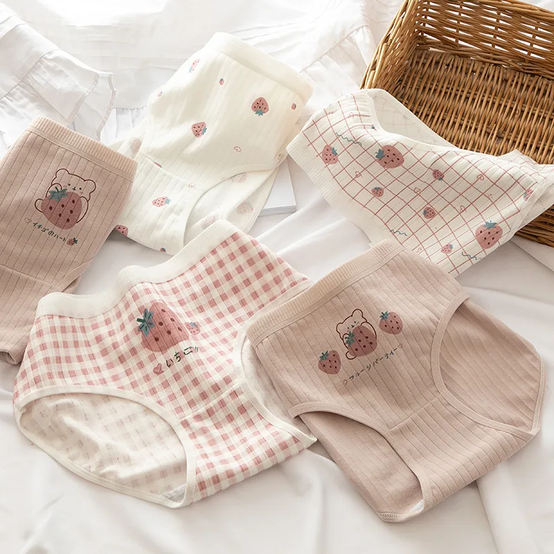 Хлопковое женское нижнее белье, с принтом клубники, удобное, мягкое...