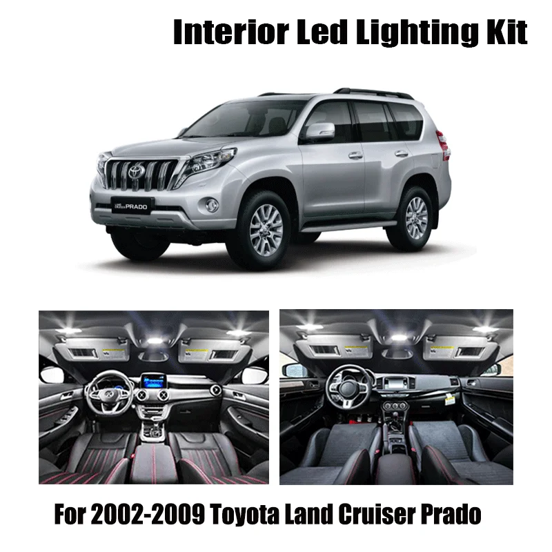 Нет ошибок белые светодиодные с Canbus внутренняя карта купольный свет комплект для Toyota Land Cruiser Prado 120 J12 2002-2009 лампа номерного знака
