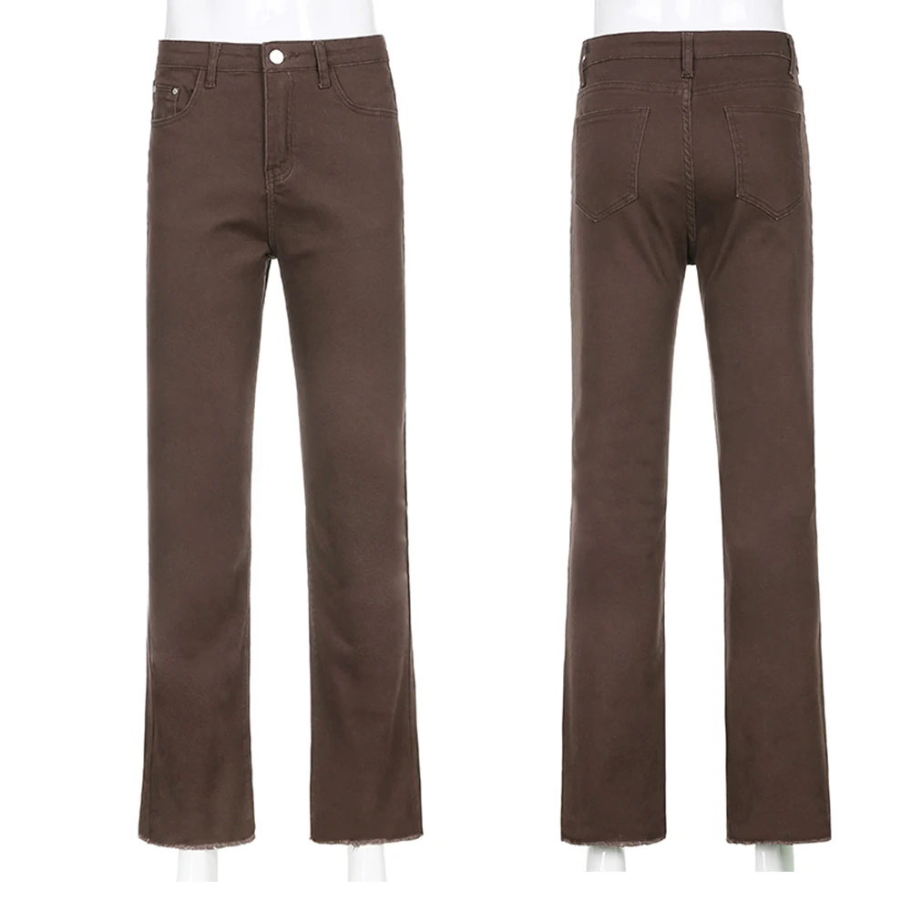 Винтажные Коричневые джинсы Y2K Mom, женская уличная одежда, узкие Стрейчевые Классические джинсовые расклешенные брюки, модные женские брюки в стиле Харадзюку