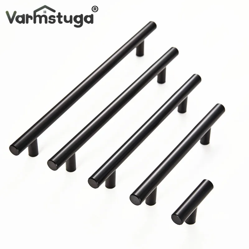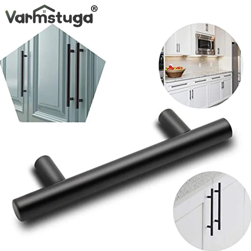 Ручка из нержавеющей стали дверца кухонного шкафа Т-образная, матовая, черная, 2-12 дюймов