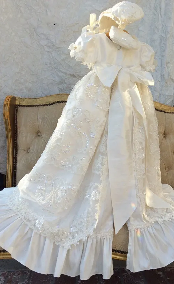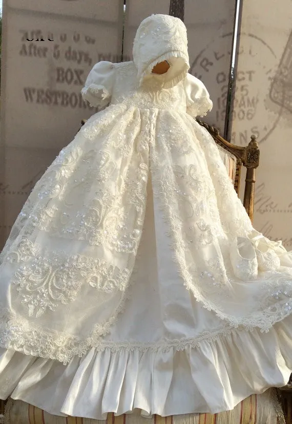 Платье белого цвета и цвета слоновой кости, отделанные блестками; Туфли класса люкс на крестины, платья с блёстками и кружевом, детская одежда для маленьких девочек платье для крещения с чепчиком изготовленный на заказ