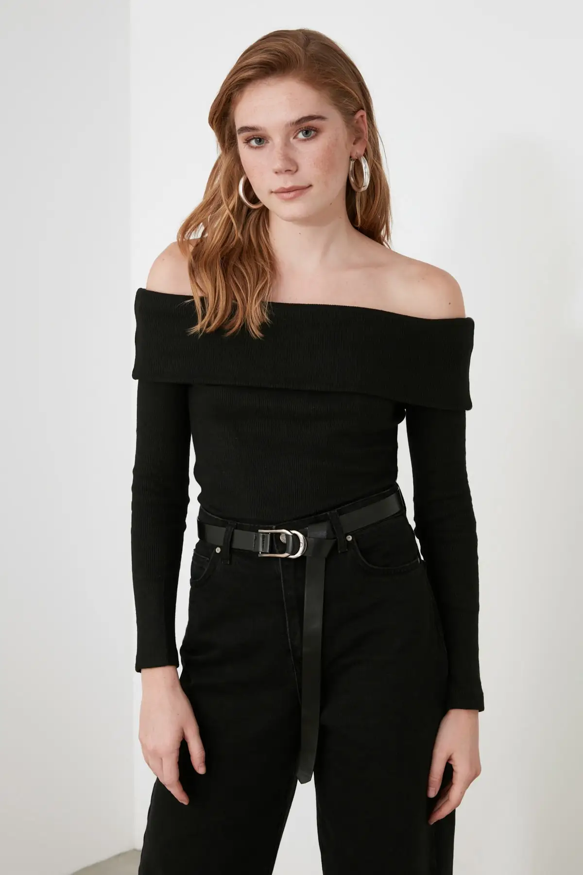 Трикотажная блузка с вырезом-кармен TWOAW21BZ1583