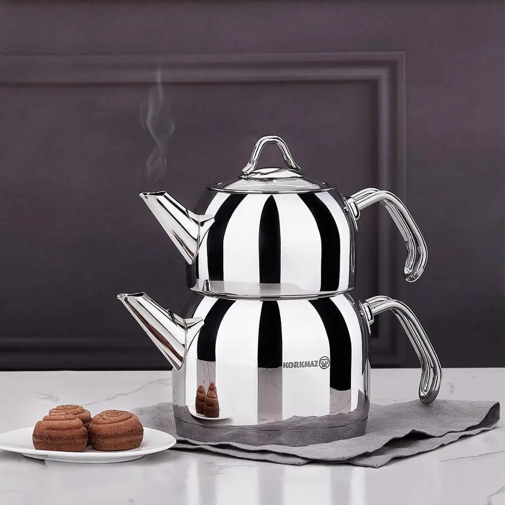 Капсулированный турецкий чайный набор Korkmaz Provita с эргономичной ручкой, польский, 0,7 и 1,5 кварт