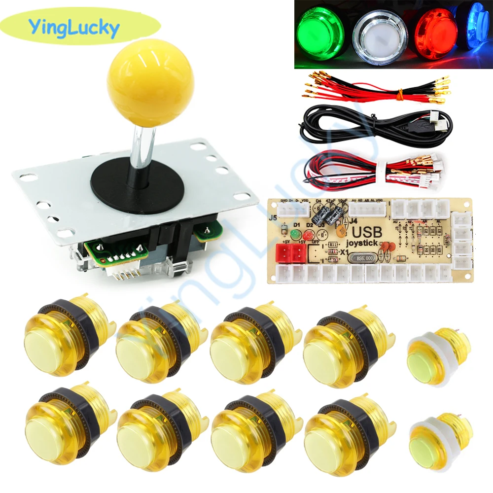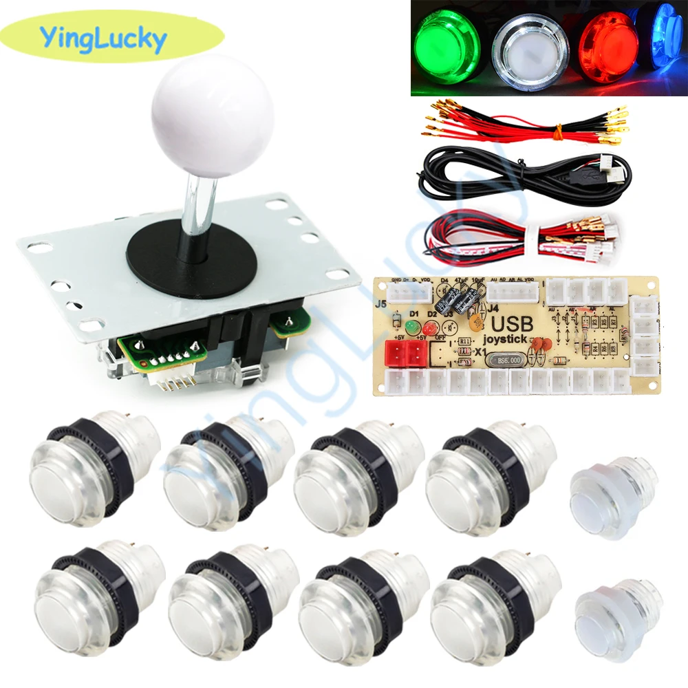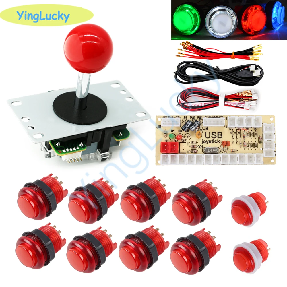 Аркады светодиодный пуговицы комплект копия SANWA 5-контактный джойстик + 10 светодиодный кнопок + высокое качество, usb-датчик для 1 плеер Аркады видео игровая приставка