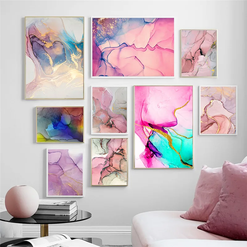 Абстрактный Красочный Роскошный декор, холст, картина акварелью, Современный домашний декор, настенный художественные плакаты и принты для гостиной