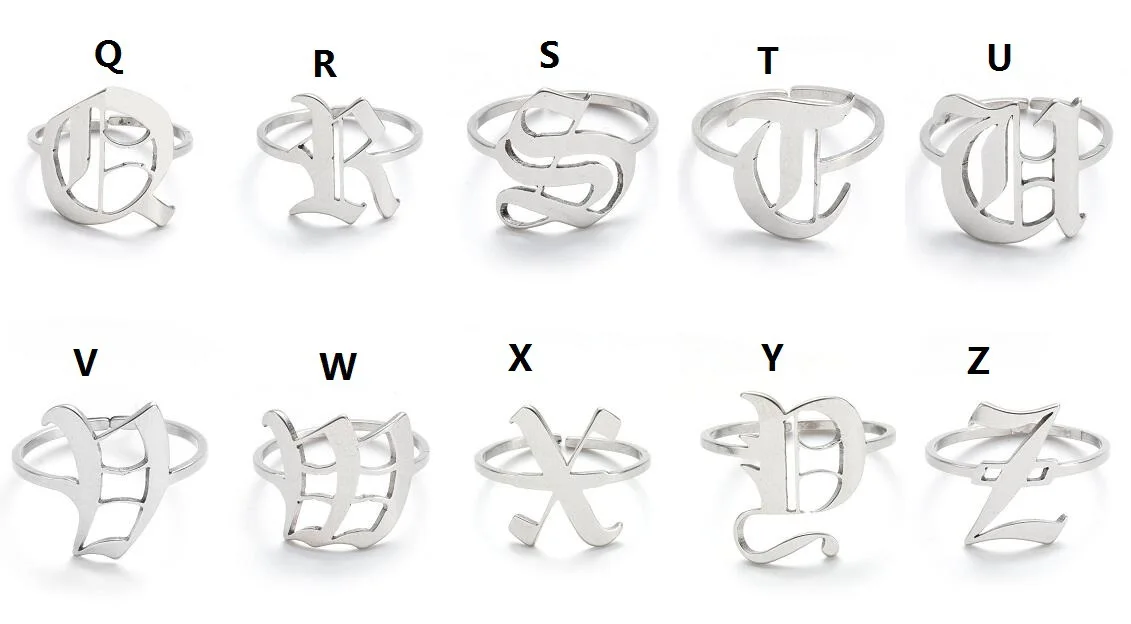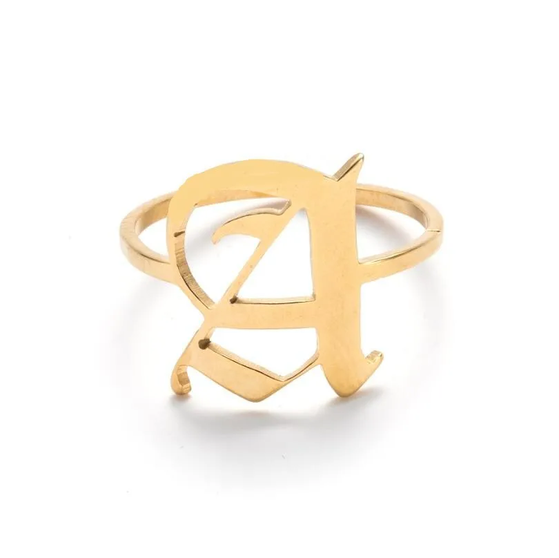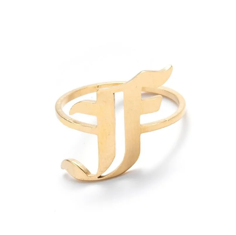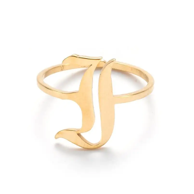 Нержавеющаясталь A-Z письмо Золотой металлический Регулируемый Открытие Кольцо лет Английский с инициалами насквозь название Alphabet Женская Праздничная обувь Мода ювелирные изделия