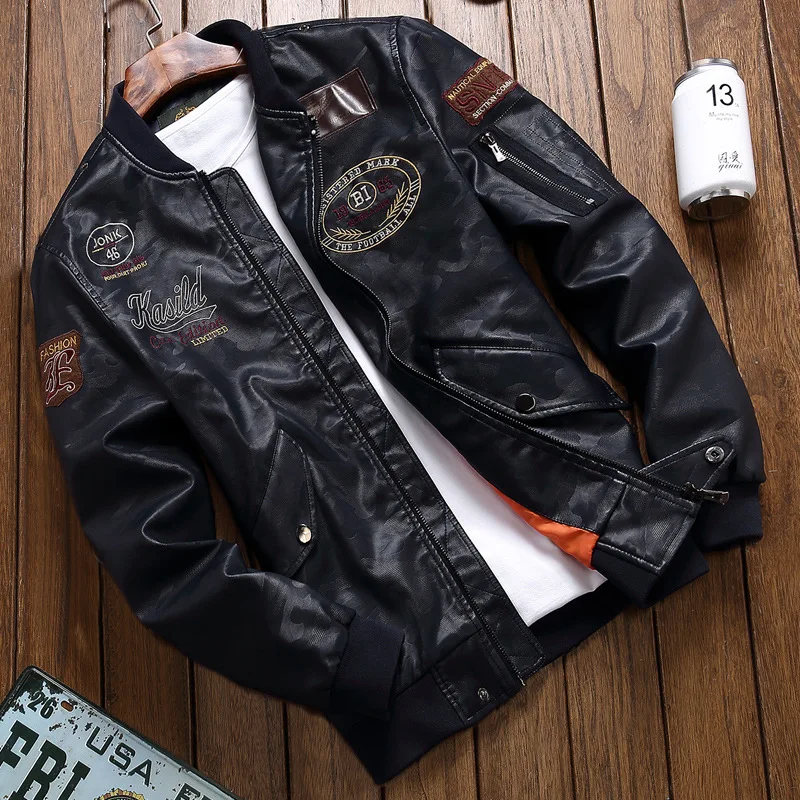 Весенняя новая кожаная куртка для молодых мужчин, модные трендовые красивые облегающие мужские Мотоциклетные Куртки из искусственной кожи, куртки-бомберы