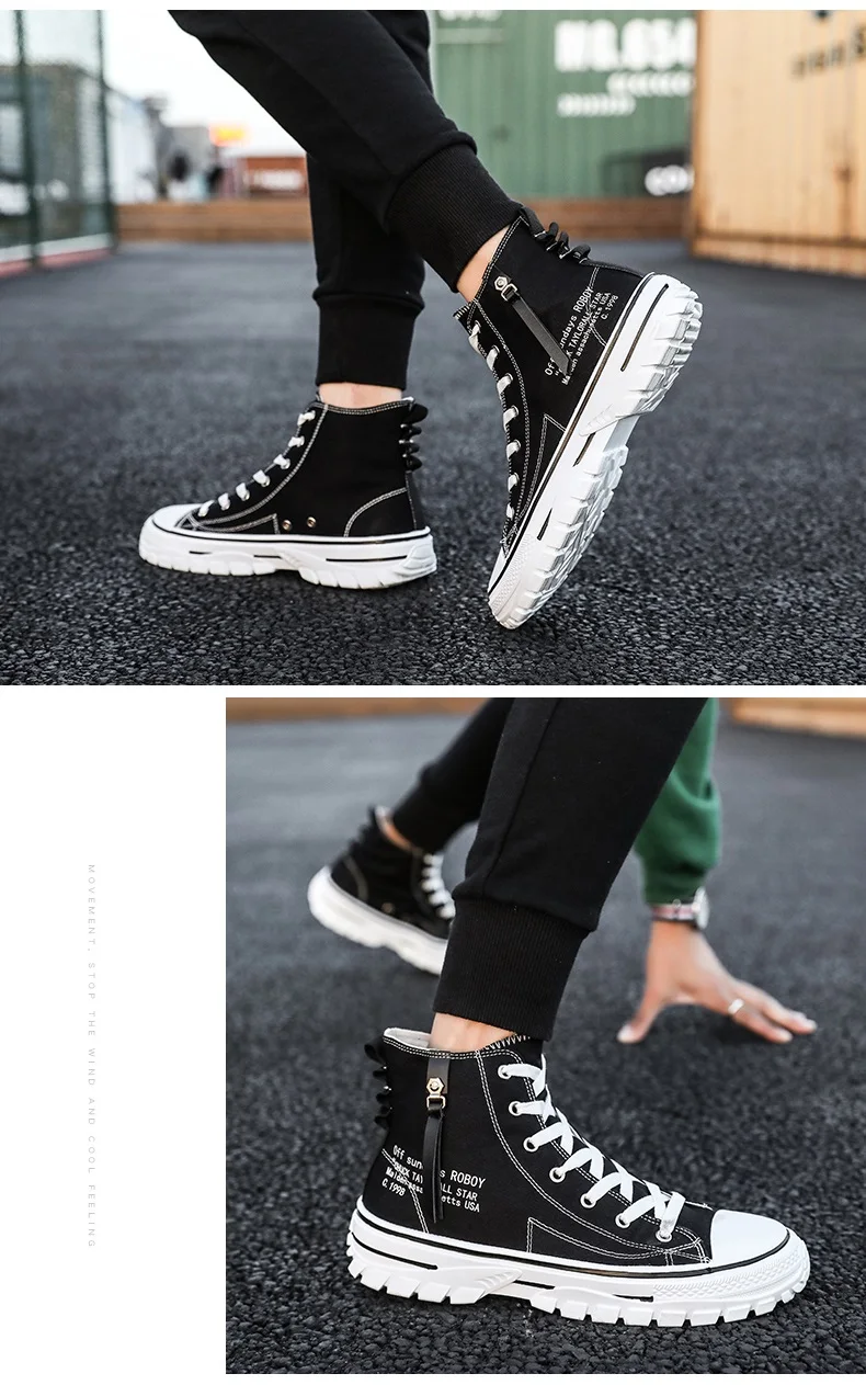 Для мужчин повседневная обувь Для мужчин с высоким берцем парусиновая обувь Оксфорд обувь с подошвой из вулканизированной резины черный, белый цвет кроссовки Для мужчин обувь дикие Для мужчин повседневная трендовая обувь