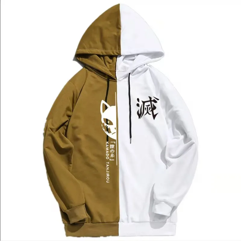 Толстовка Tanjiro мужская с принтом, тонкая двухцветная спортивная ...