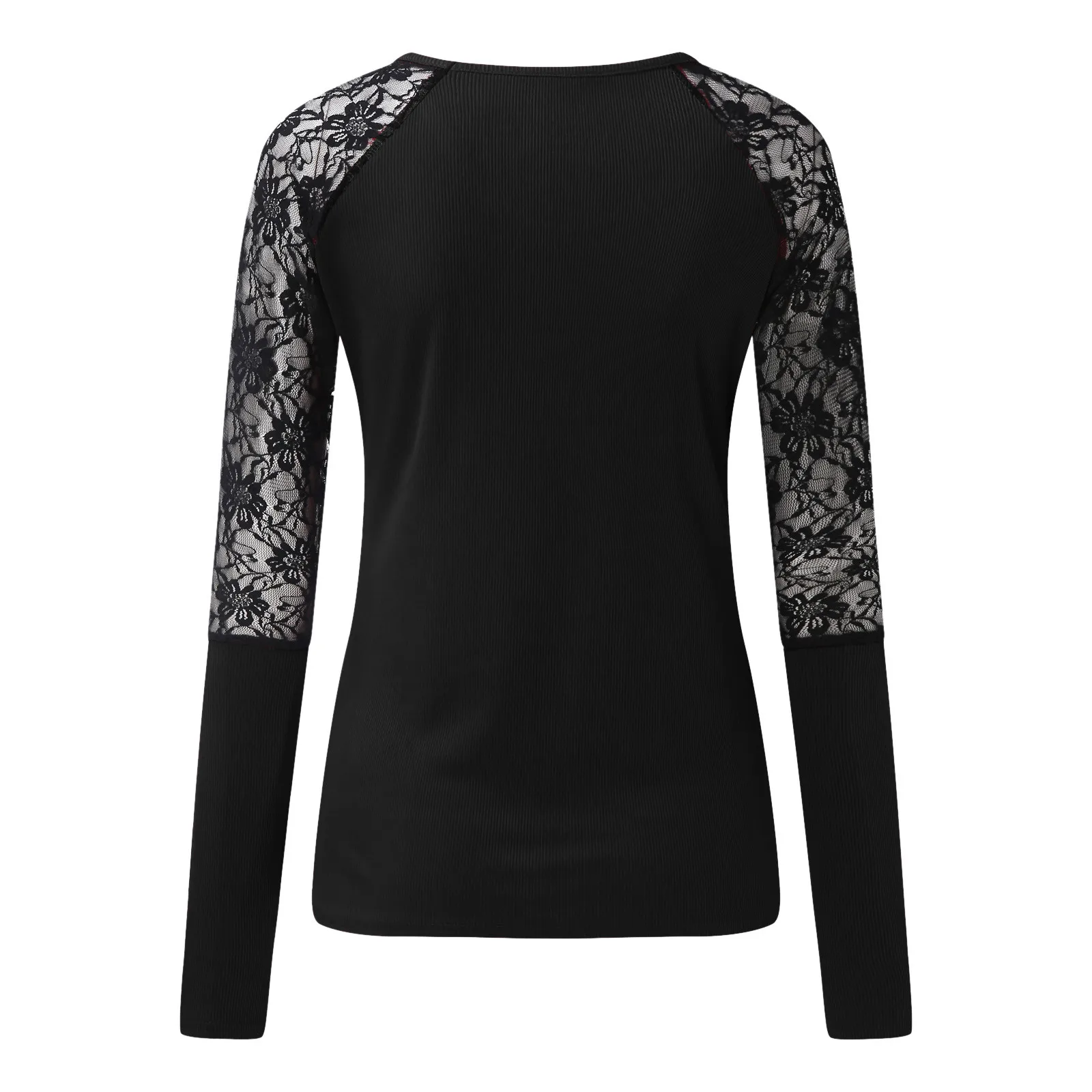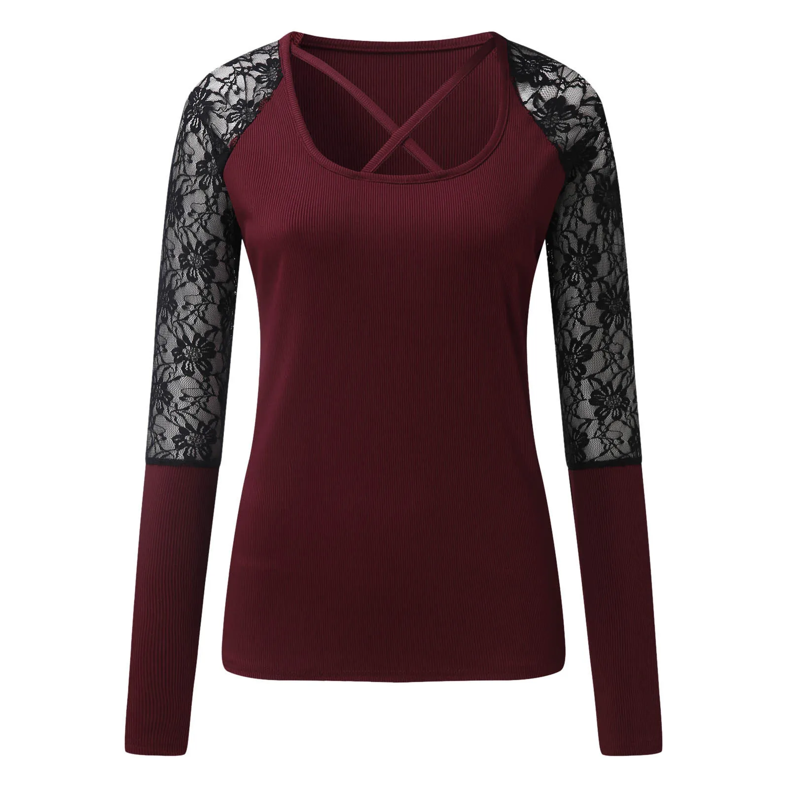 40 # Тонкая Блузка женские кружевные открытые элегантное платье с круглым вырезом, рубашки для мальчиков с длинными рукавами с принтом крест грудную клетку Повседневная блузка Рубашка Женская