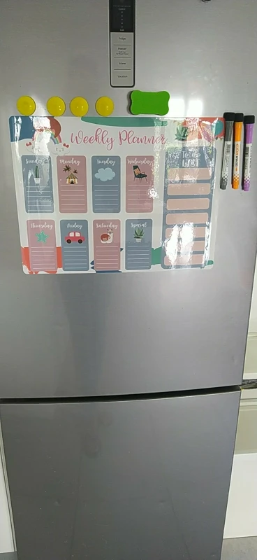 Единственным недостатком является то, что он был свернут, и он плохо прилипал к холодильнику, потому что он взял плохую форму. I had to have it Plan and with weight above For A Few days to use it.