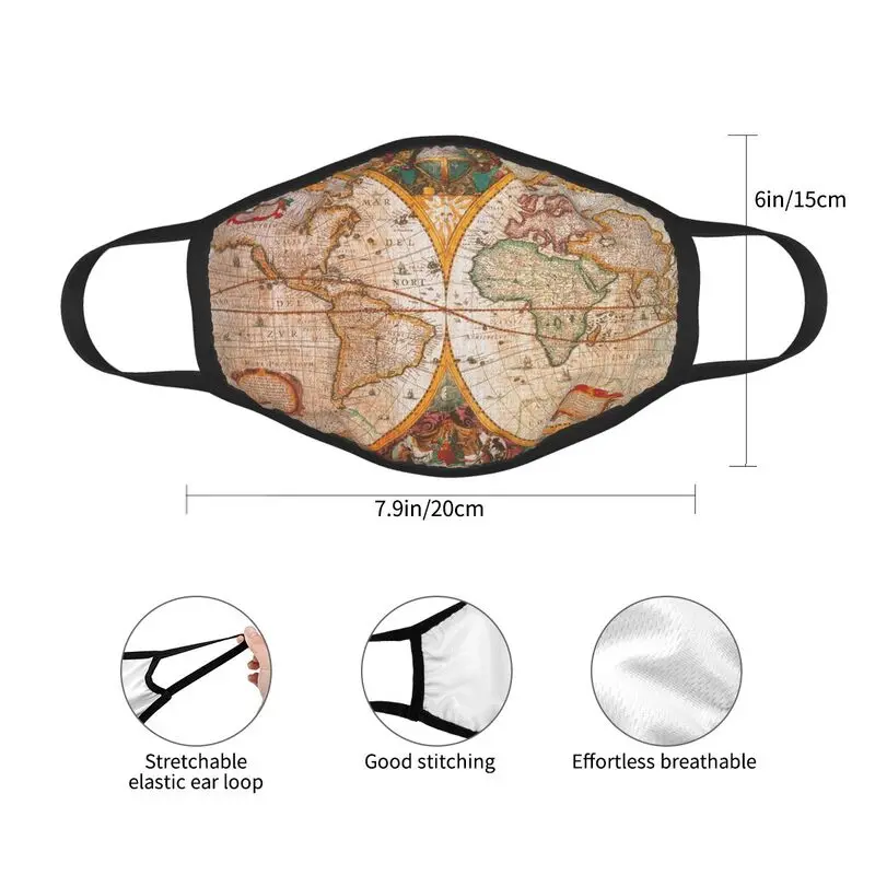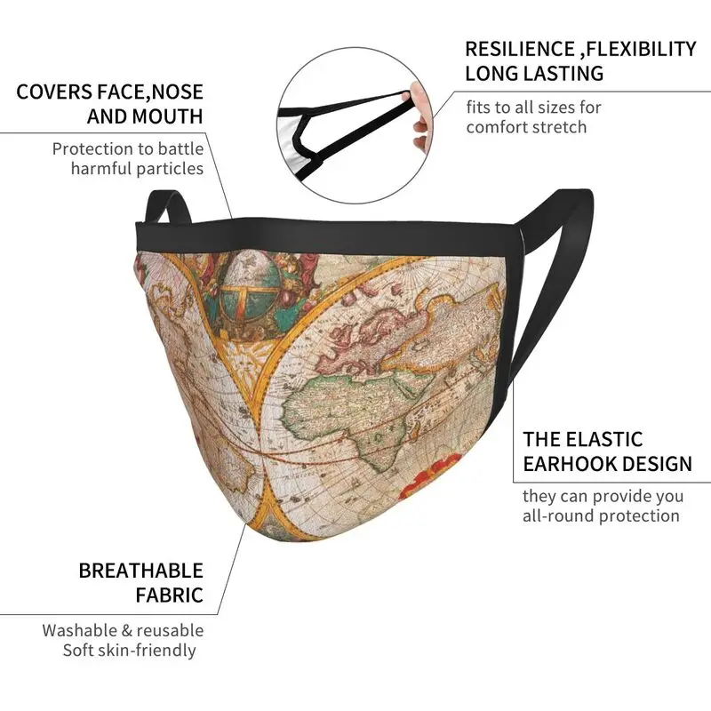 Ретро Карта мира маска против пыли многоразовый уход за кожей лица Маска Защитная крышка респиратор для взрослых Рот-муфельная печь